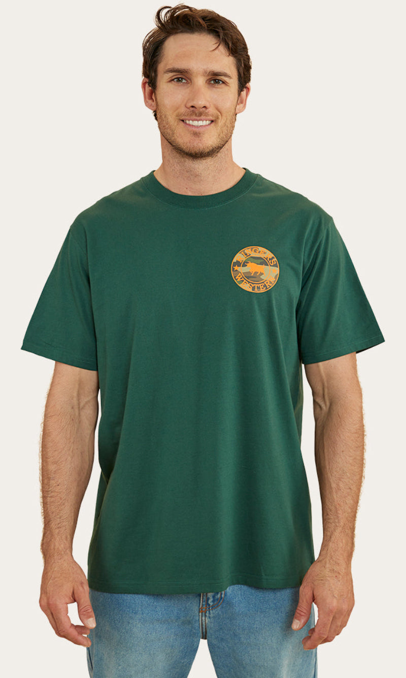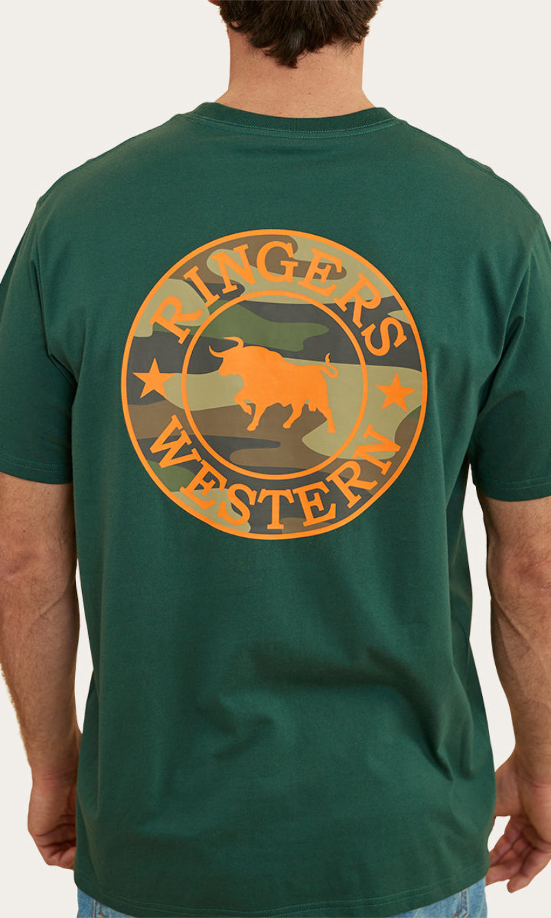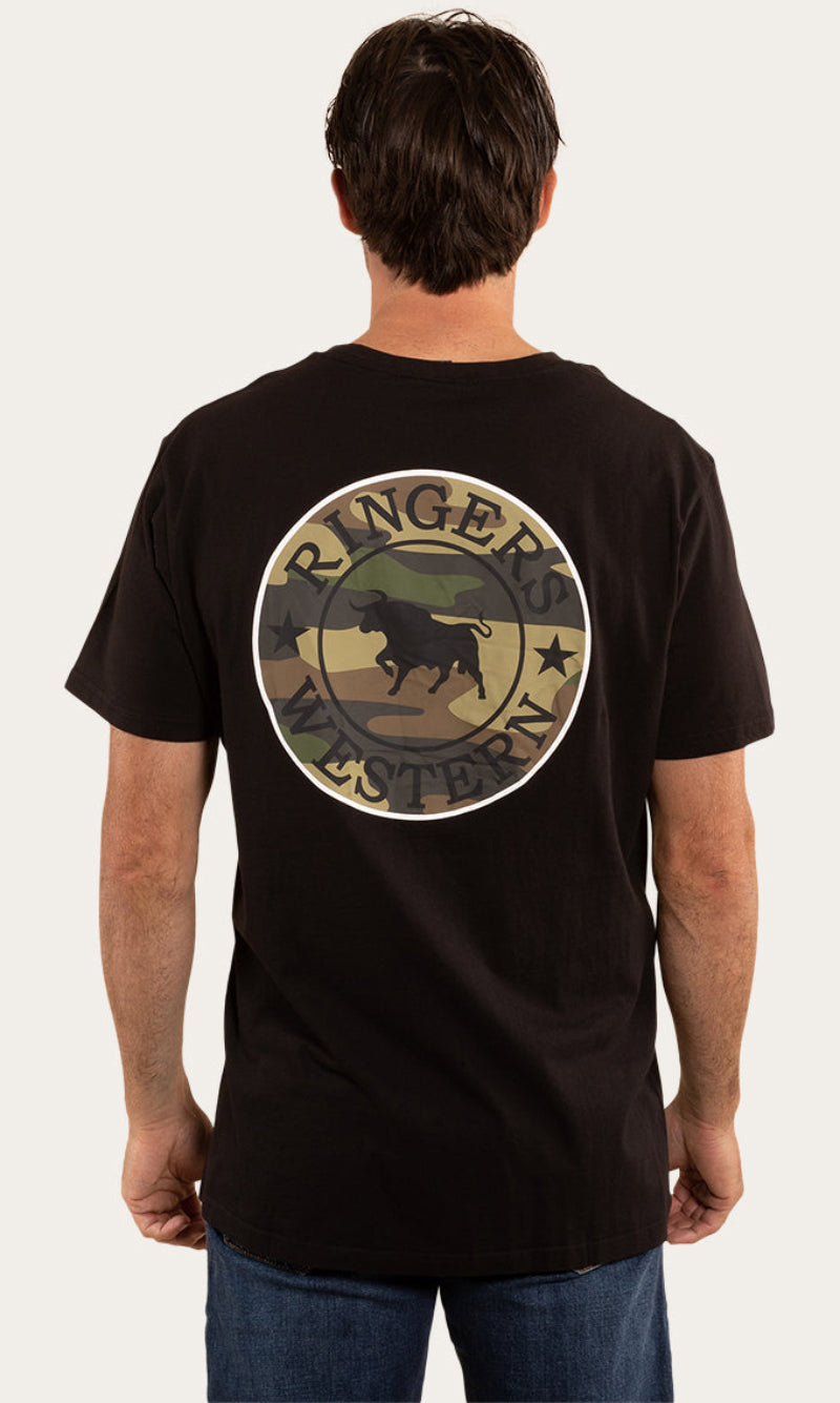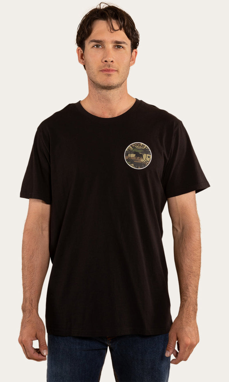 Get the same great Signature Bull look with an extra soft and breathable feel. The Signature Bull T-Shirt is a regular fit cotton shirt with soft hand feel. It features a small chest print and large signature bull back print with Ringers Western woven labels.
