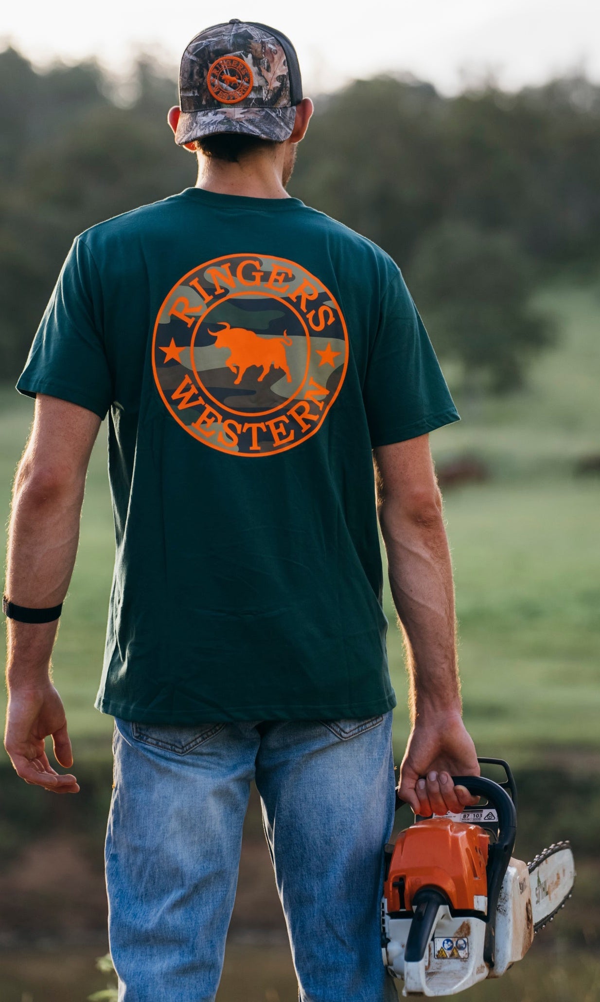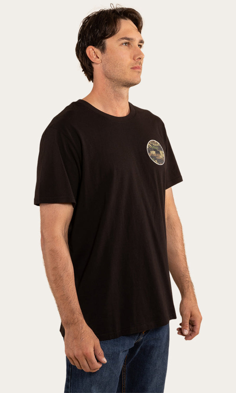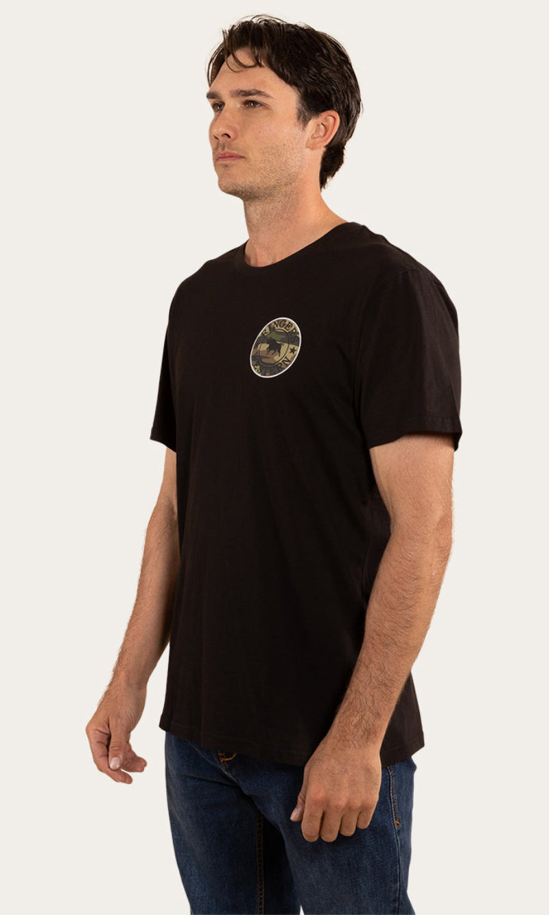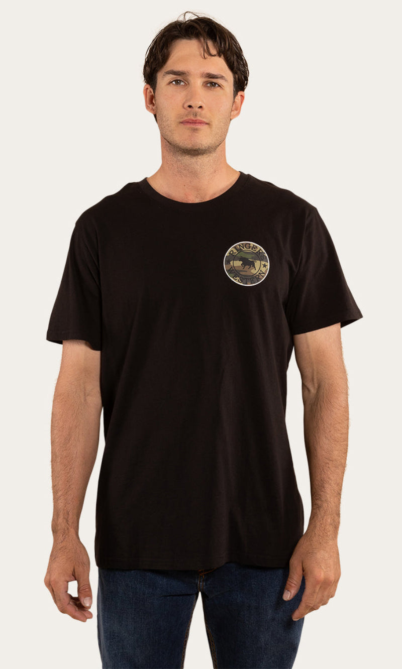 Get the same great Signature Bull look with an extra soft and breathable feel. The Signature Bull T-Shirt is a regular fit cotton shirt with soft hand feel. It features a small chest print and large signature bull back print with Ringers Western woven labels.