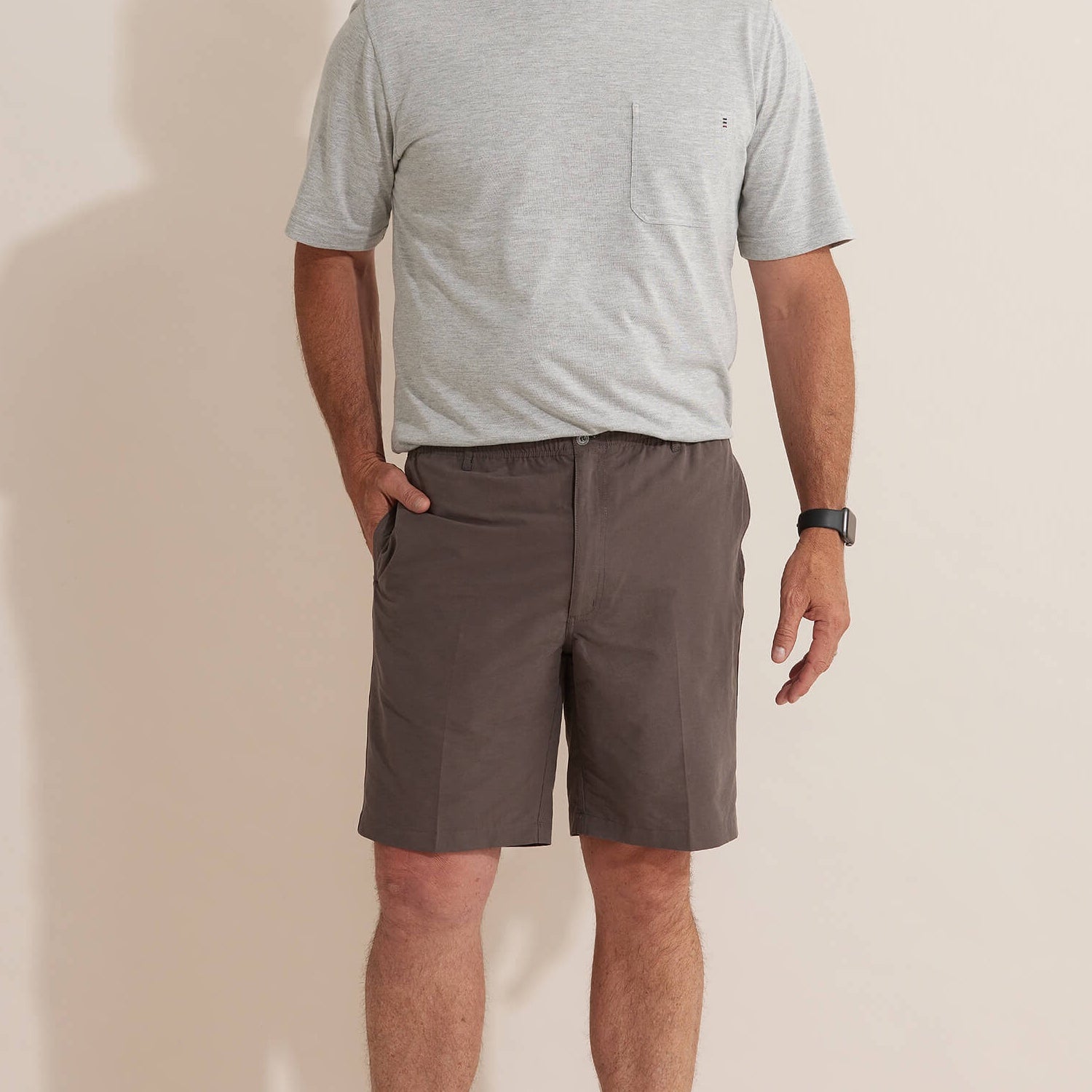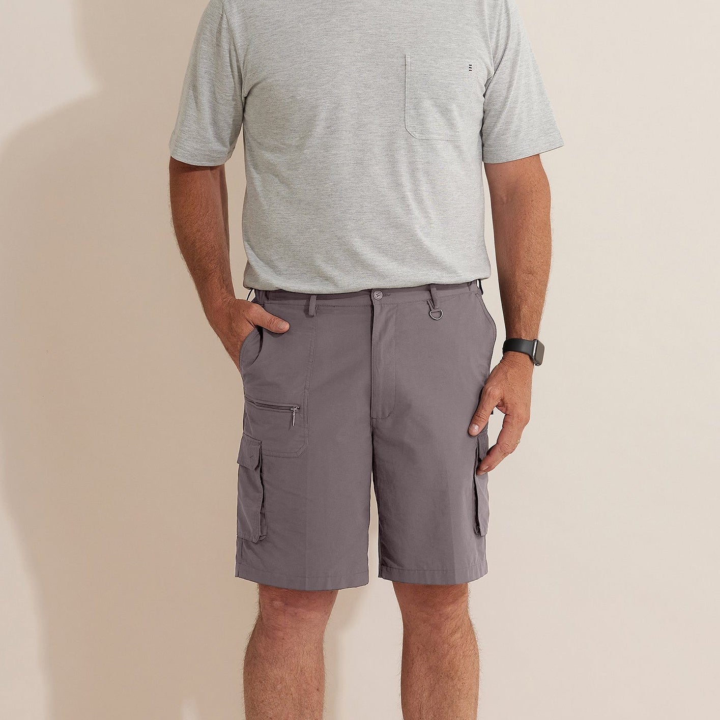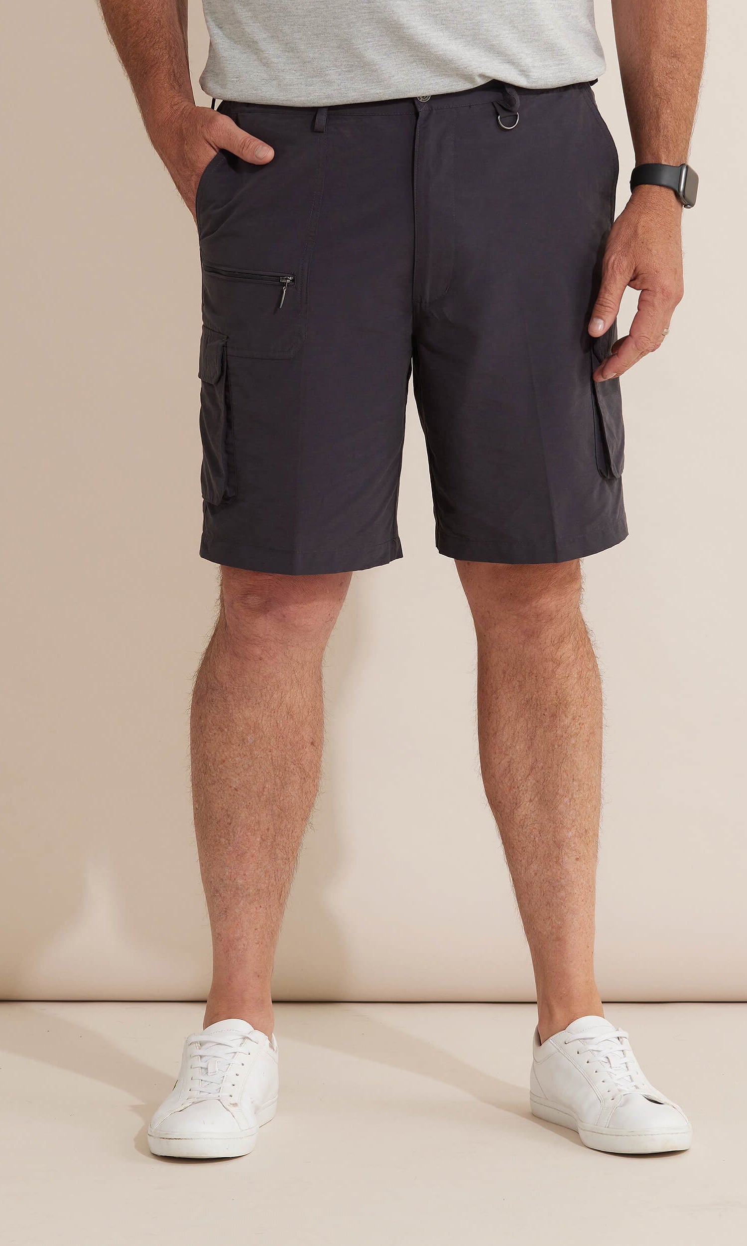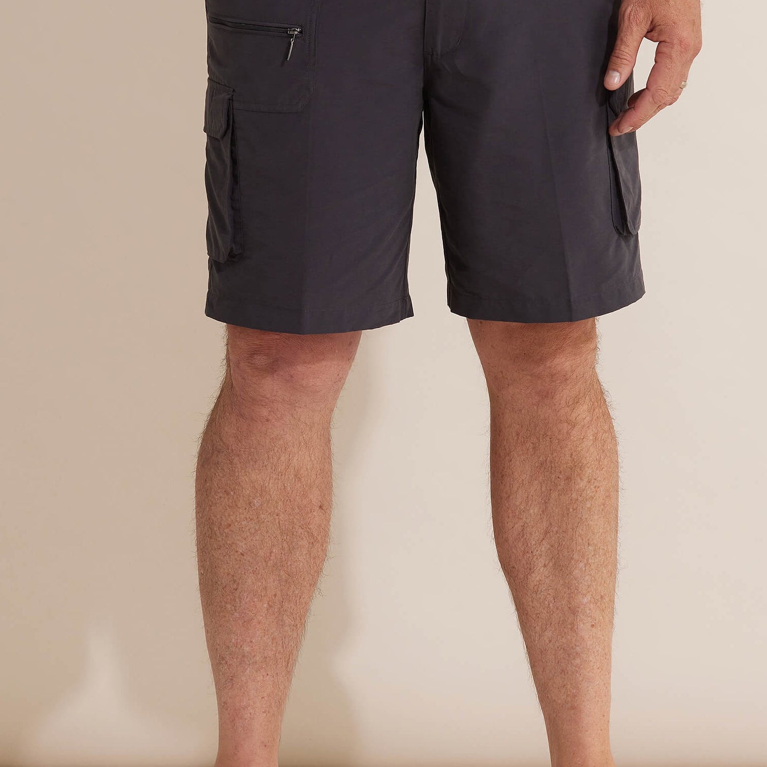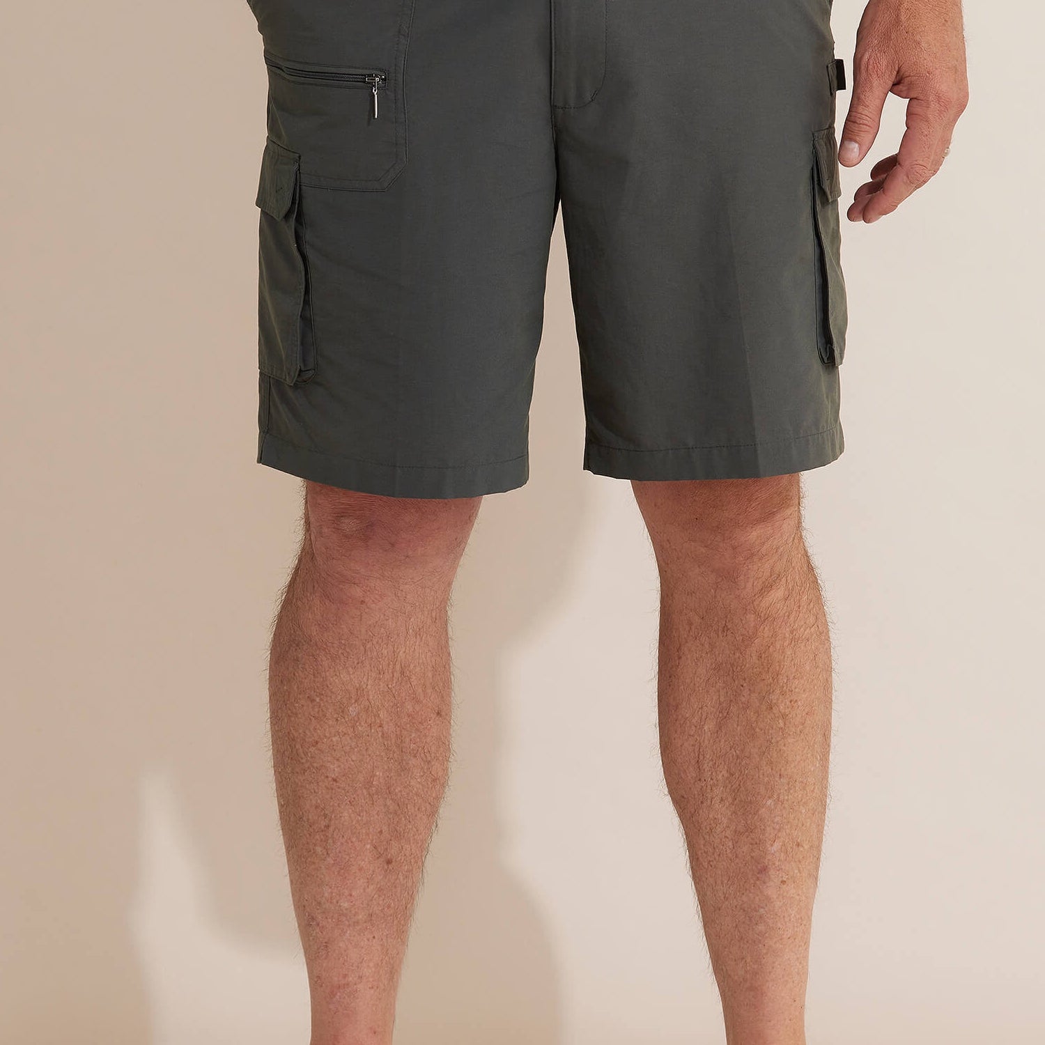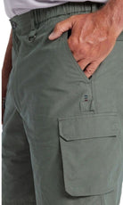 The Woodbury Short is one of our most popular men's fabrications, perfect for outdoor activities. The cotton rich blend gives a natural look with a sueded hand feel. Featuring a zip, elasticated waistband for ease & comfort, slanted side pockets & utility pockets.