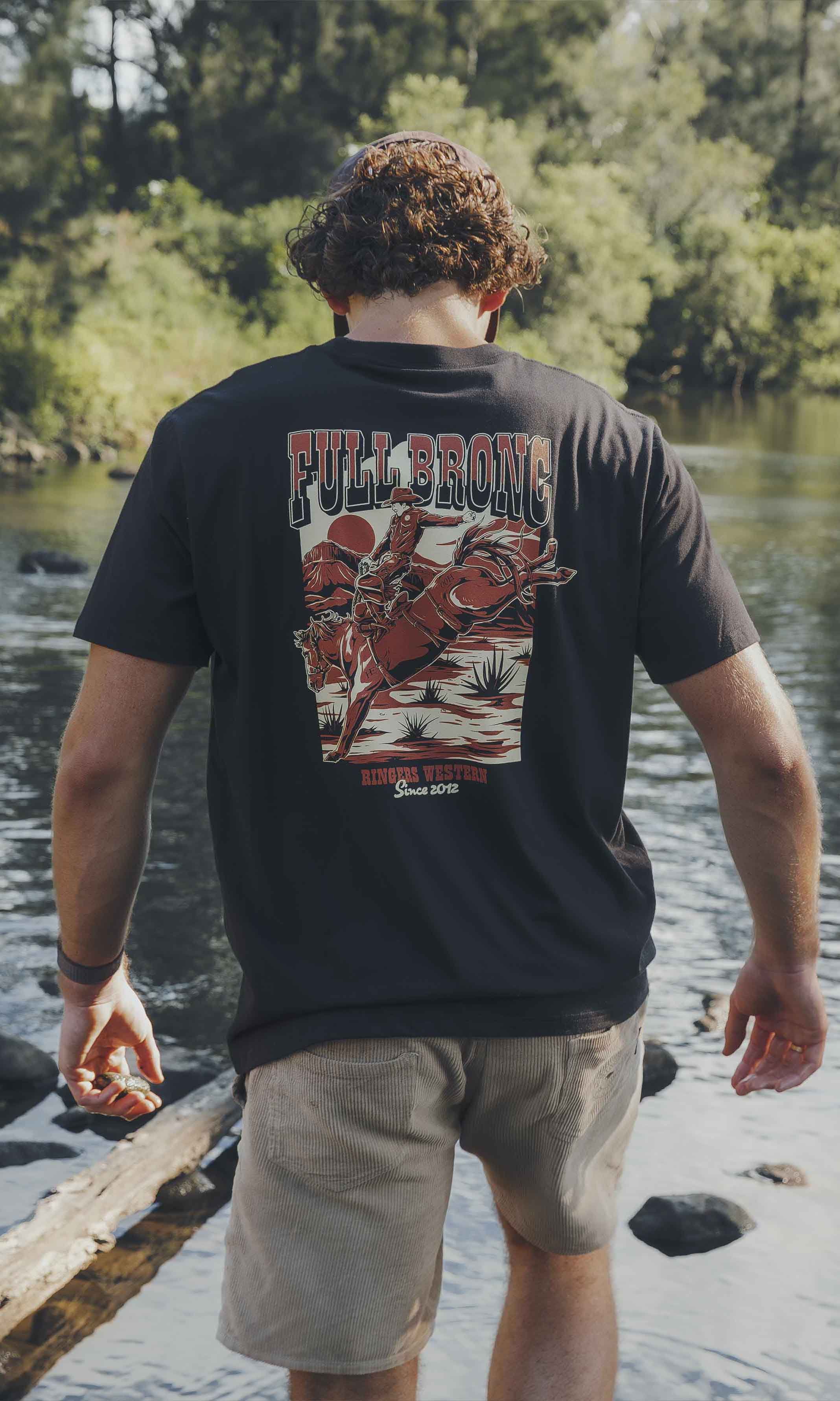 A bold bucking bronco back graphic captures the energy of the western spirit, balanced with a subtle chest print for everyday wearability. Perfect for the paddock, pub and weekend adventures, this western graphic tee is built to go wherever the good times roll.