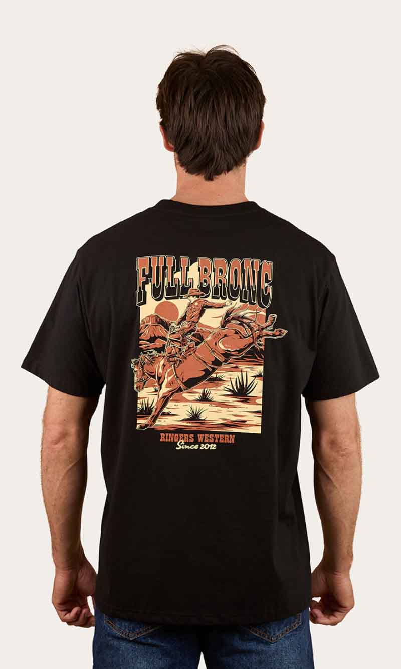 The Full Bronc Mens Loose Fit T-Shirt is a must-have T-Shirt for every rogue cowboy. Crafted from ultra-soft 100% cotton jersey, this men's loose fitting Tee delivers all-day comfort whilst keeping your look effortlessly cool. The loose fit gives you extra room to move and creates a modern, relaxed silhouette - perfect for pairing with your favourite Ringers Western denim or shorts.