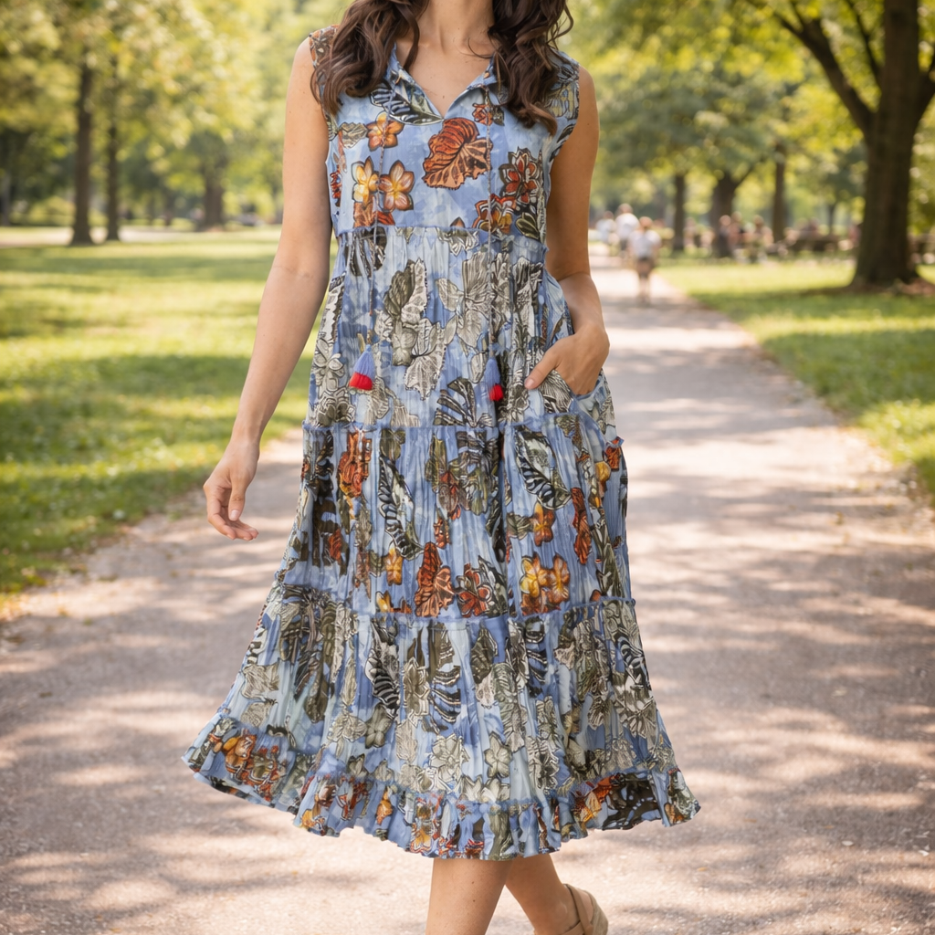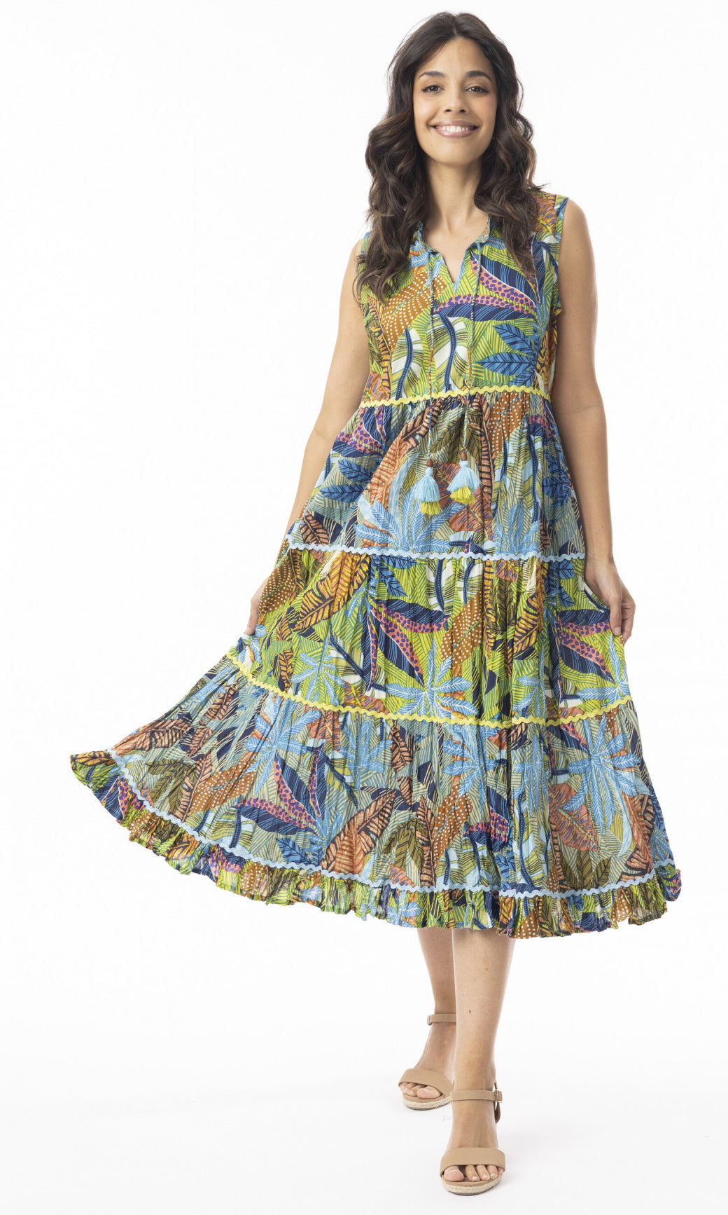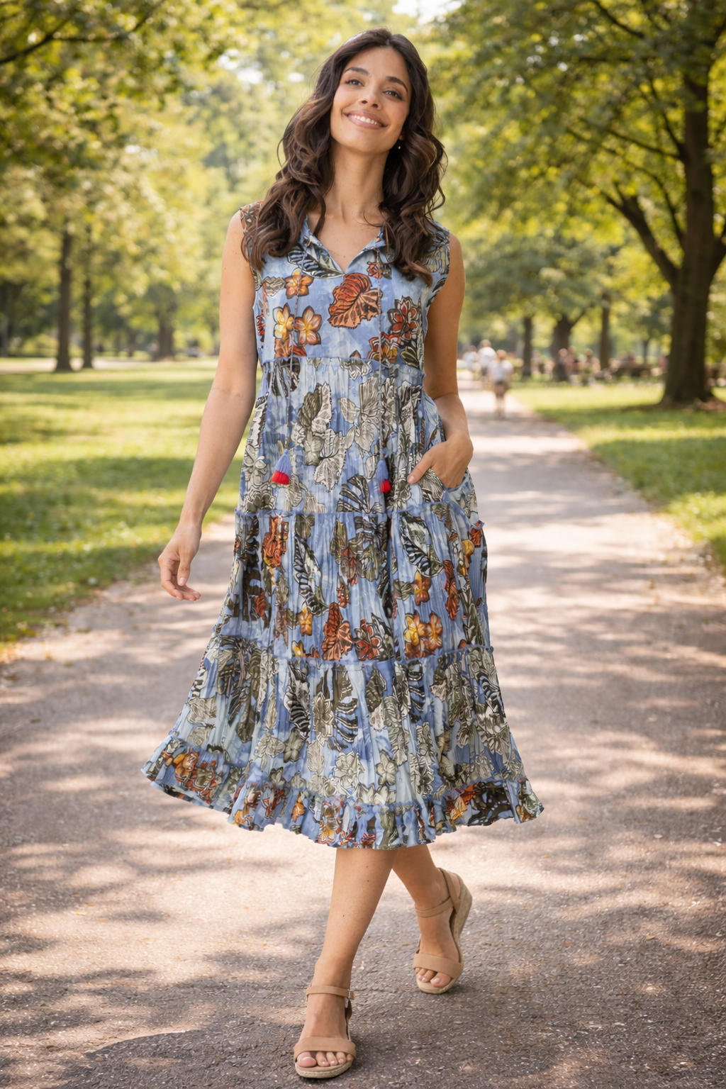 Crinkle Cotton Blend Dress Boho Sleeveless Tayrona