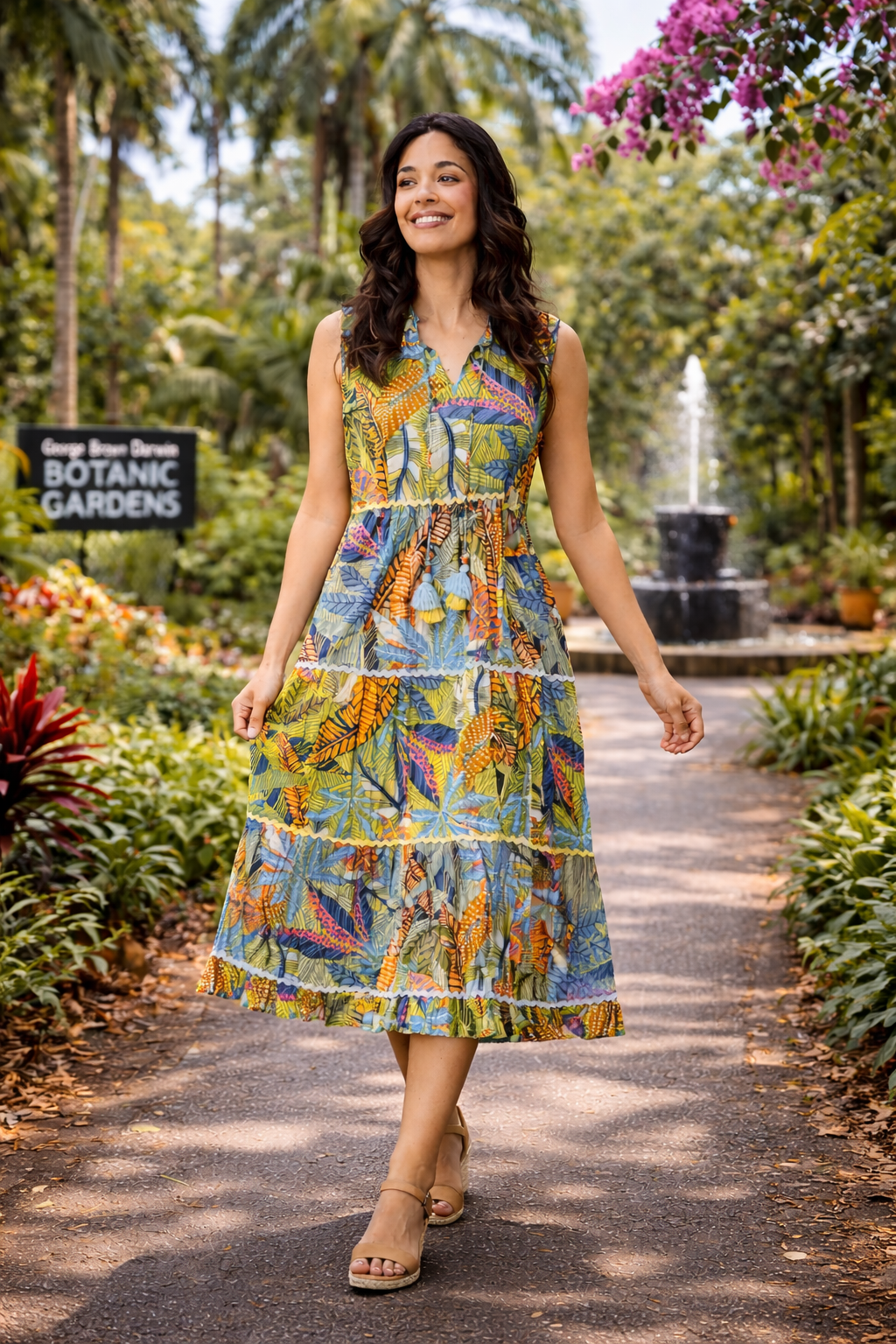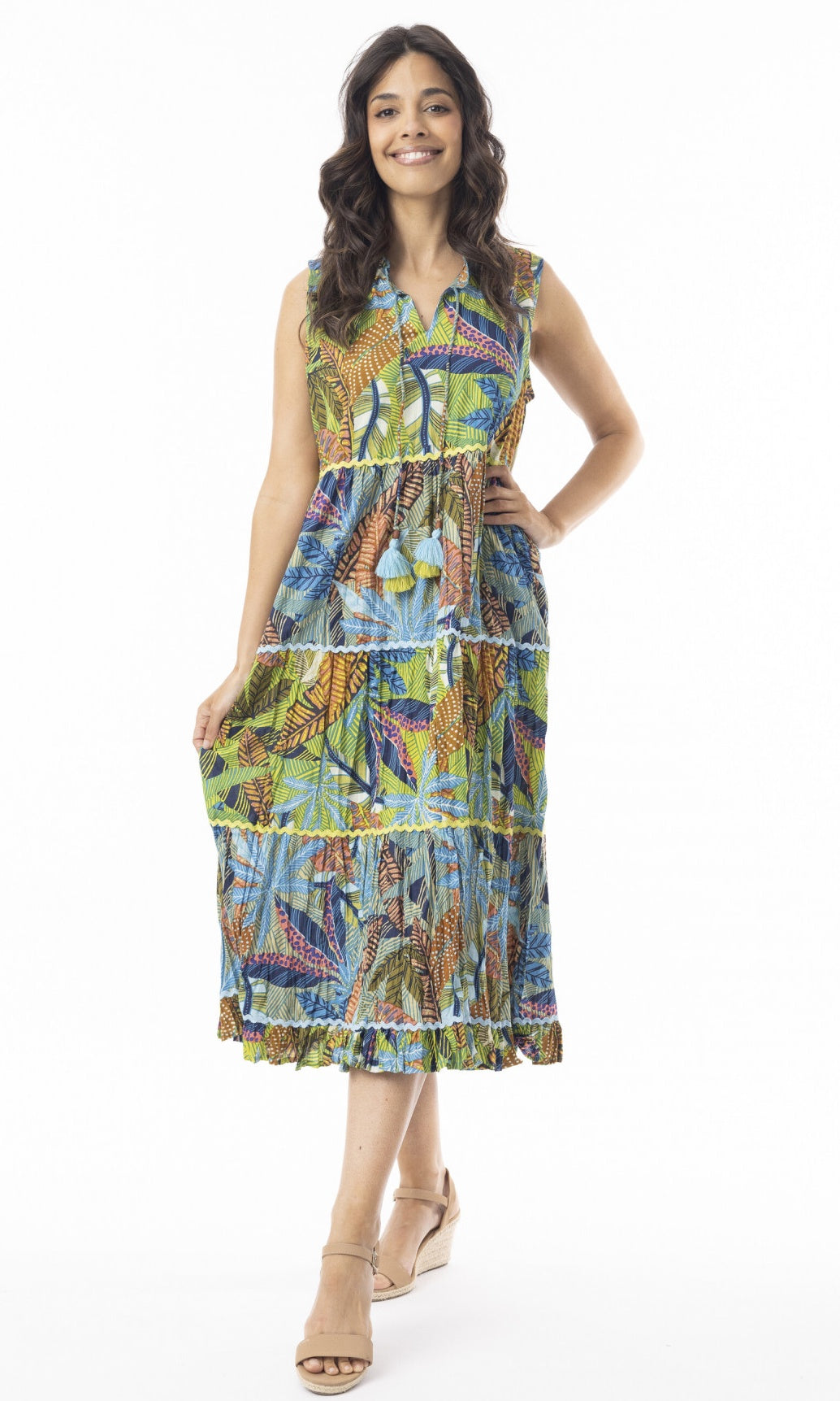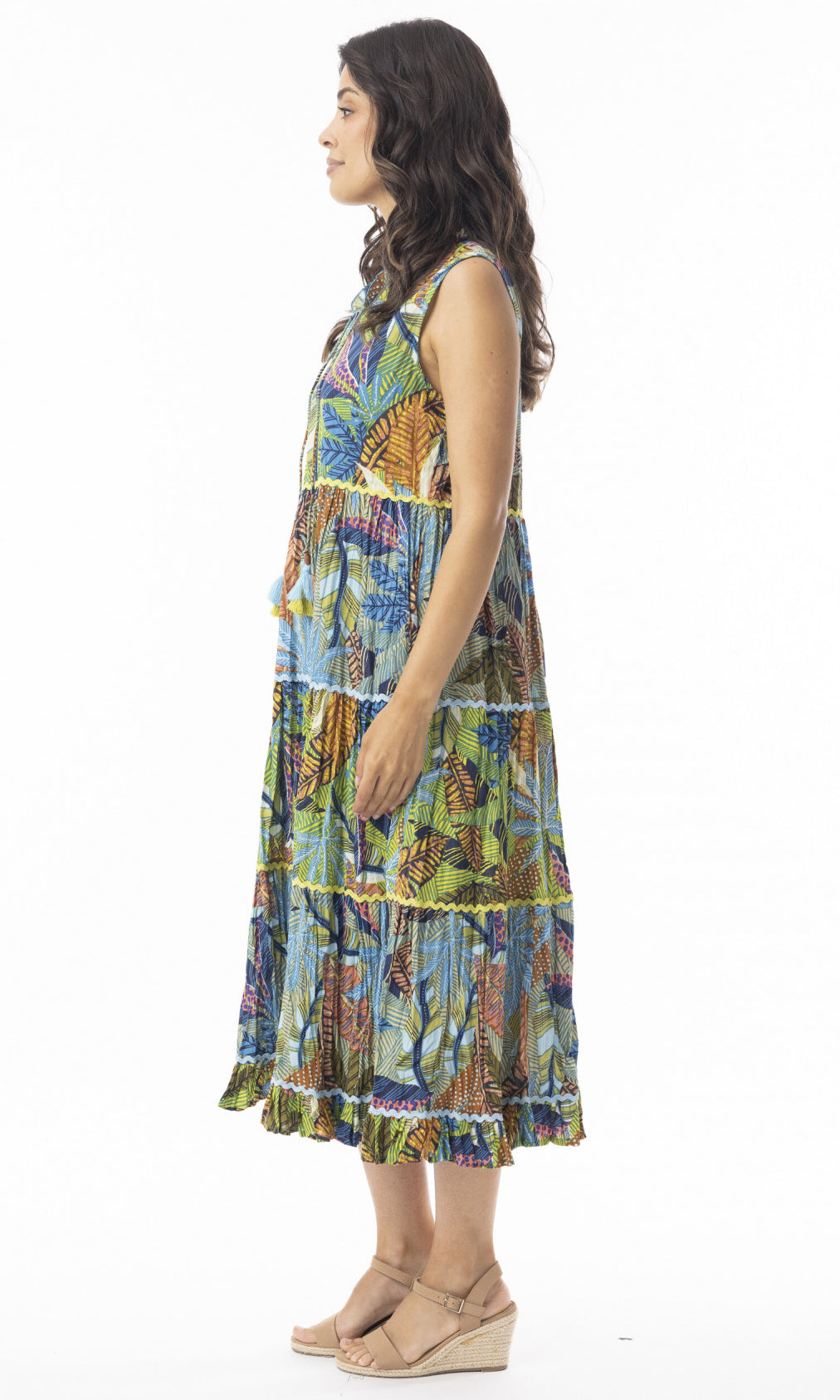 Crinkle Cotton Blend Dress Boho Sleeveless Tayrona