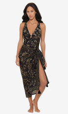 Featured in the Balinese print, etches of soft neutrals illuminated on sleek black.