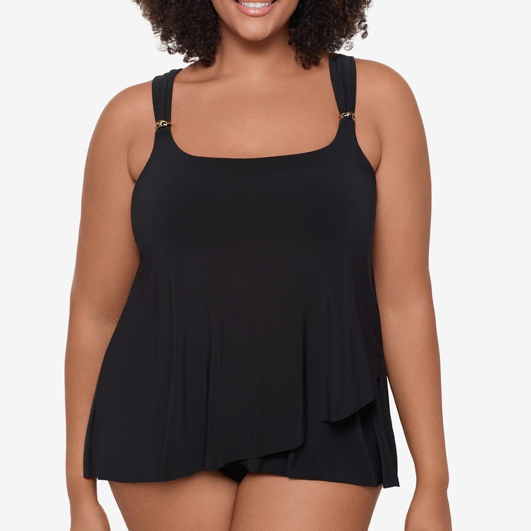 Here to do exactly what it says: razzle and dazzle. This tankini top isn’t just another of the plus-size bathing suits—it accentuates the bust, shapes your curves, and catches the light. So go ahead, give ‘em a little glam in one of the most flattering plus-size swimsuits.