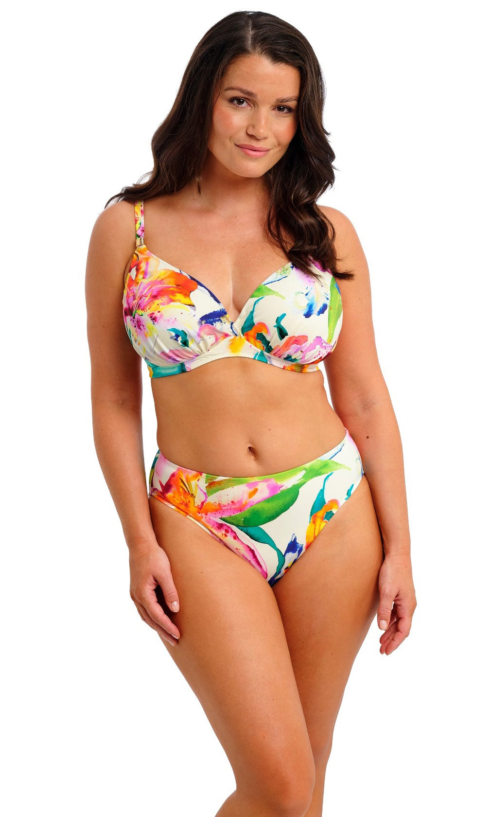 Add a touch of joy and escapism to your holiday wardrobe with all-new Iguazu Falls. Bursting with high-energy colours, this range features a lively mix of vibrant colour pops on a soft off white base. With an array of styles available, including our go to UW Gathered Full cup bikini top, a new look multi way plunge and a choice of co-ordinates - Don’t forget to complete your outfit with our Sarong!