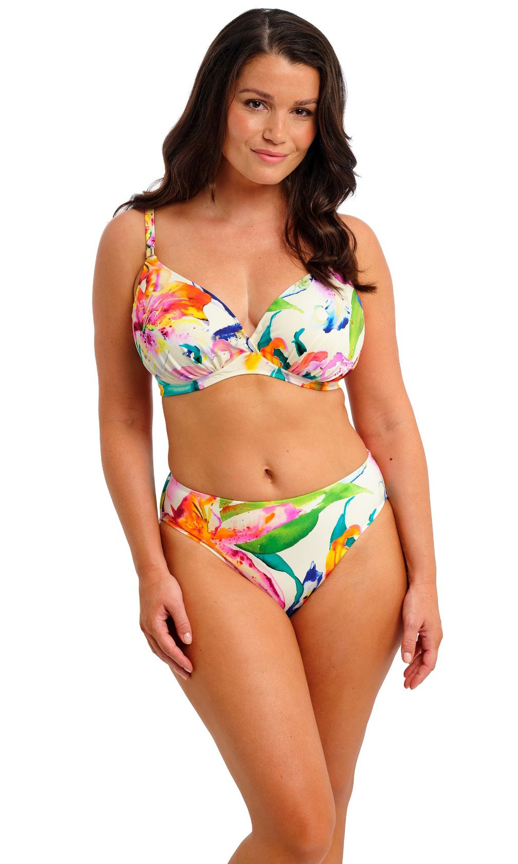 Add a touch of joy and escapism to your holiday wardrobe with all-new Iguazu Falls. Bursting with high-energy colours, this range features a lively mix of vibrant colour pops on a soft off white base. With an array of styles available, including our go to UW Gathered Full cup bikini top, a new look multi way plunge and a choice of co-ordinates - Don’t forget to complete your outfit with our Sarong!