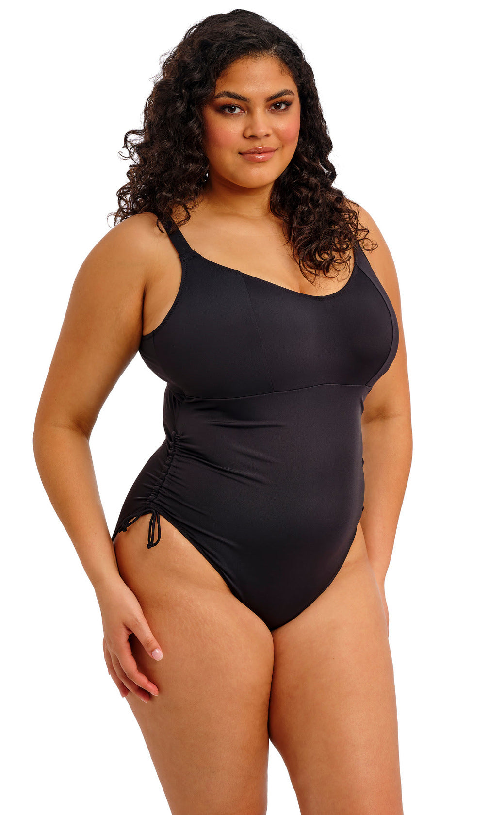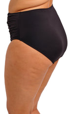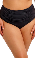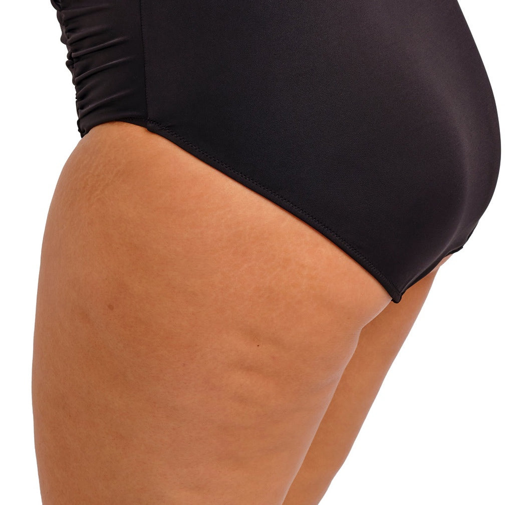 - Full coverage brief with gathered front styling to flatter the tummy area