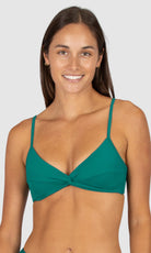 Baku's Rococco Twist Bralette Bikini Bra, a versatile swimwear essential crafted with thoughtful details for a customisable and stylish beach look. This bralette features removable soft cups and a flattering twist design, complemented by adjustable and convertible straps, all secured with a convenient clip back closure for both comfort and convenience.