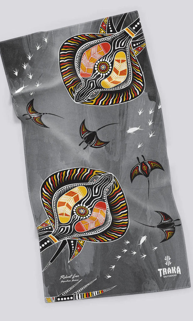 This collection of towels feature a range of vibrant, colourful artworks by talented Kauraraig artist Robert Levi. The artworks depict a range of ocean and freshwater animals in their natural habitats.