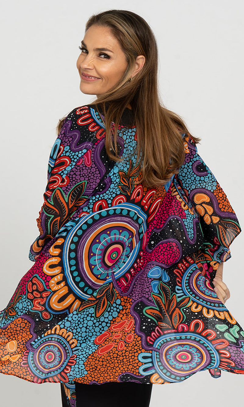 Celebration: A vibrant collection from Yorta Yorta artist Alkina Edwards that represents people from all walks of life coming together to celebrate their cultures. This beautiful design lights up a room with Alkina's signature vibrant digital artwork.