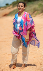 Made from light, breezy chiffon, these shawls drape beautifully, creating a soft and graceful silhouette without adding weight or bulk. The fabric catches the light as you move, enhancing the vibrant colours of the artwork and making it the perfect statement piece for any occasion.