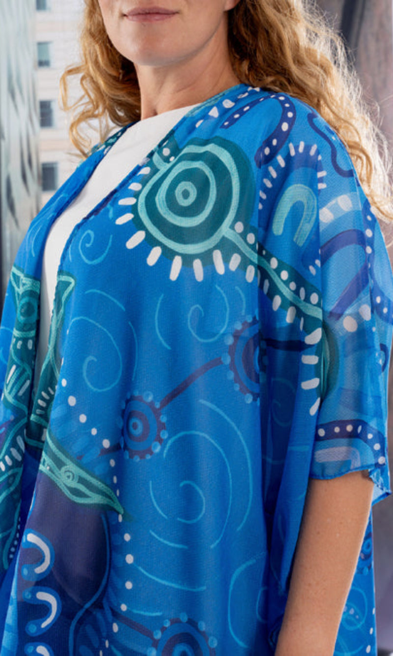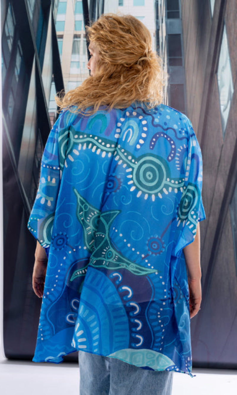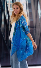 Made from light, airy chiffon, these shawls drape beautifully, creating a soft and graceful silhouette without adding weight or bulk. The fabric catches the light as you move, enhancing the vibrant colours of the artwork and making it the perfect statement piece for any occasion.
