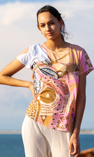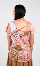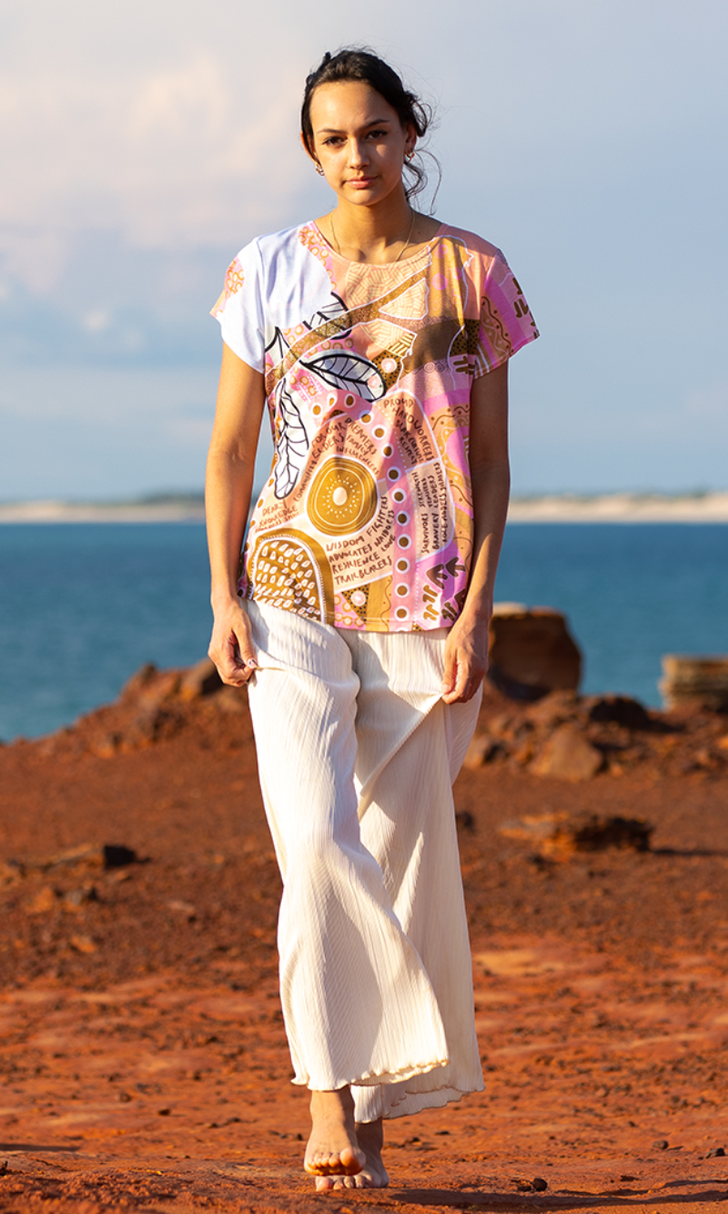 The theme ‘For Our Elders’ felt perfectly relevant for this year's NAIDOC Week. It's our Elders' knowledge which is inherited from the generational stories and experiences of living on a particular country, and the exchange between generations of Aboriginal knowledge and cultural practices that so tightly connect and shape our community and identity today. The deep knowledge shared by Elders is continuously evolving. Their experiences of living in contemporary Australian society have provided them with another source of new knowledge which seeks to empower and unify today's generations of young Aboriginal communities. Fundamentally, the contemporary colours I've chosen to use in this piece highlight the beauty and significance of traditional stories of the landscape and country. This isn't to forget the heartbreaking impact of colonisation and so much wisdom being lost. It also honours our Elders, who for more than 60,000 years have used ceremonies, cultural activities, storytelling and traditional crafts to pass on knowledge from generation to generation. In this artwork you will see elements of Bidjara (my mob’s) country which is home to substantial Indigenous cultural heritage, Indigenous healing places, undisturbed natural bushlands, lagoons, wildlife and ancient waterways. This is the place where the Rainbow Serpent Mundagudda began its movement through the landscape and formed the waterways including the sandstone gorge itself. I also wanted to include the Aboriginal flag since it's a fundamental symbol for all Aboriginal people and our unity. The text embedded in the flag showcases what and who our Elders are and how vital their knowledge and presence is in connecting us to star, spirit, community, country and each other.