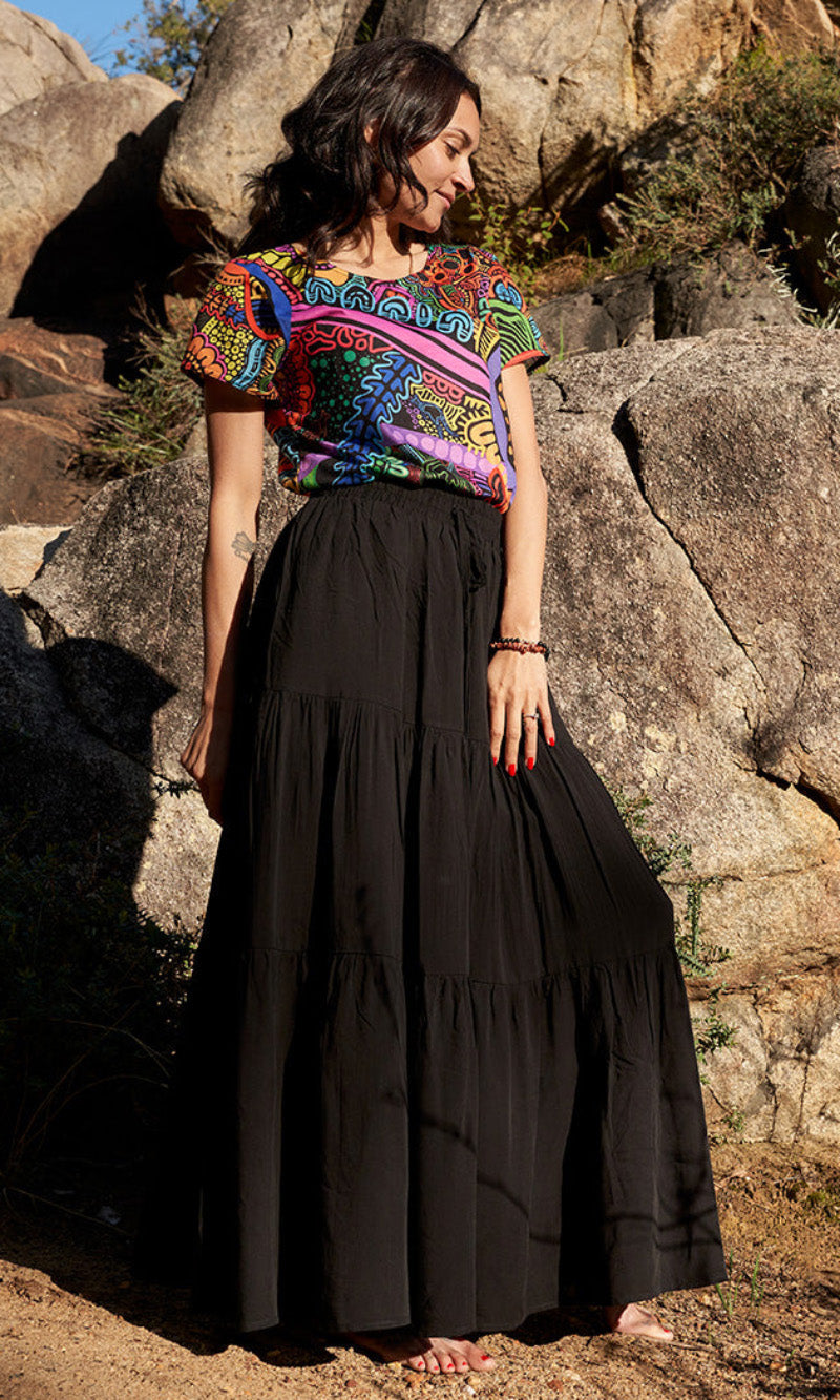 Washing: Turn the garment inside out. Gentle machine wash using cold or warm water to avoid shrinkage and colours running. Wash dark colours separately. Do not bleach. Line dry in shade. Cool iron only.