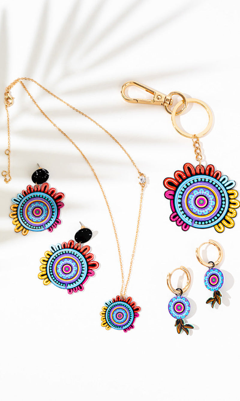 Celebration: A vibrant collection from Yorta Yorta artist Alkina Edwards that represents people from all walks of life coming together to celebrate their cultures. This beautiful design lights up a room with Alkina's signature vibrant digital artwork.
