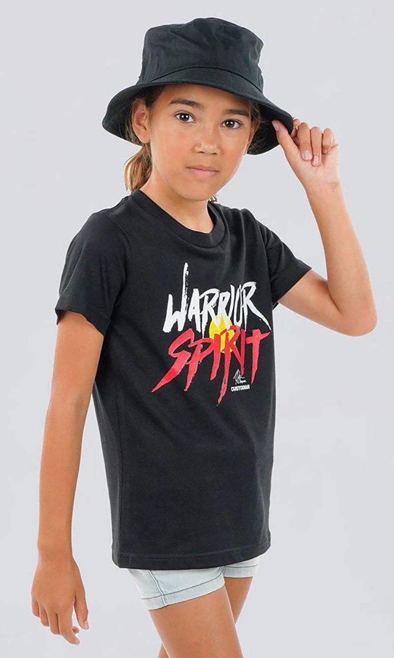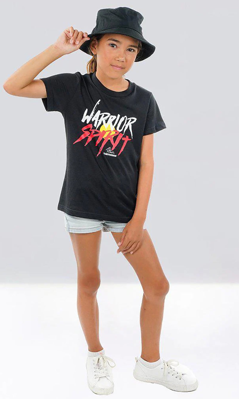 Aboriginal Art Kids T-Shirt Warrior Spirit Black