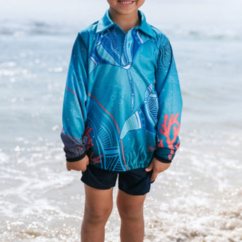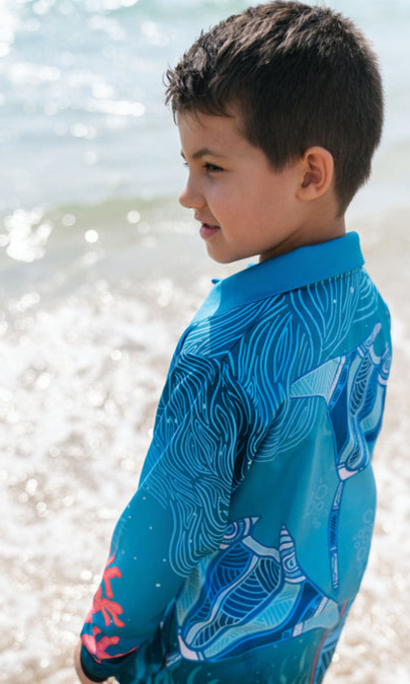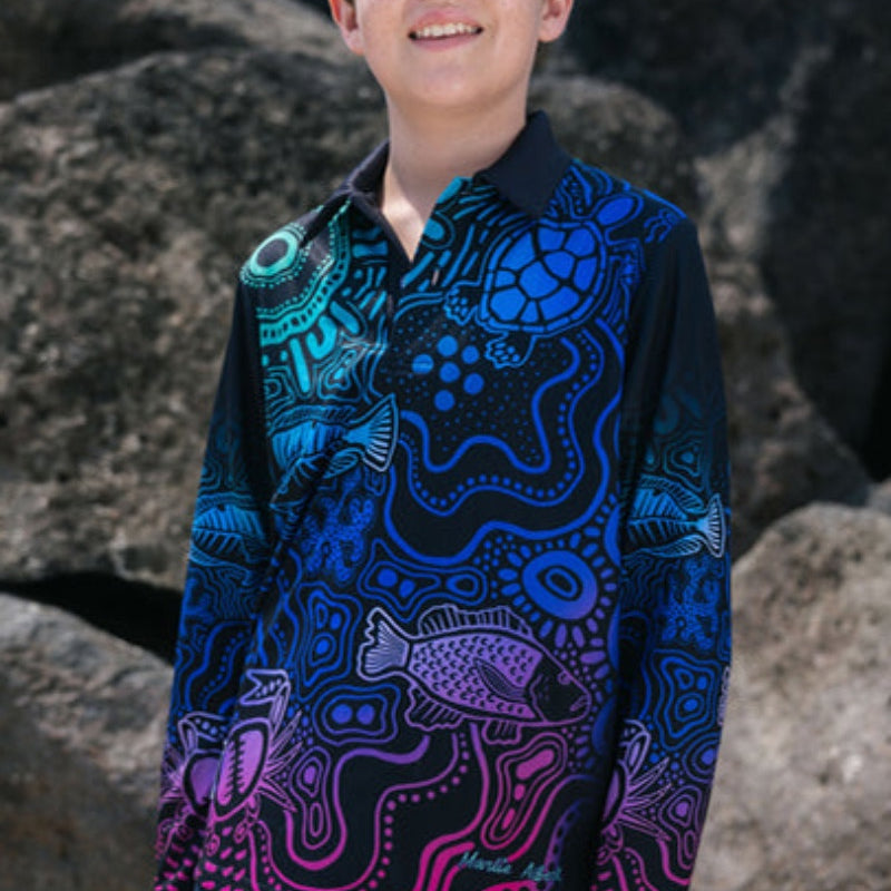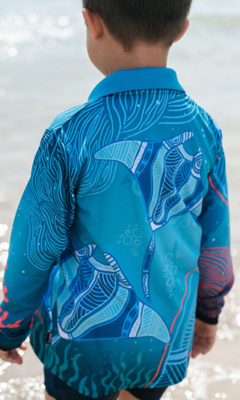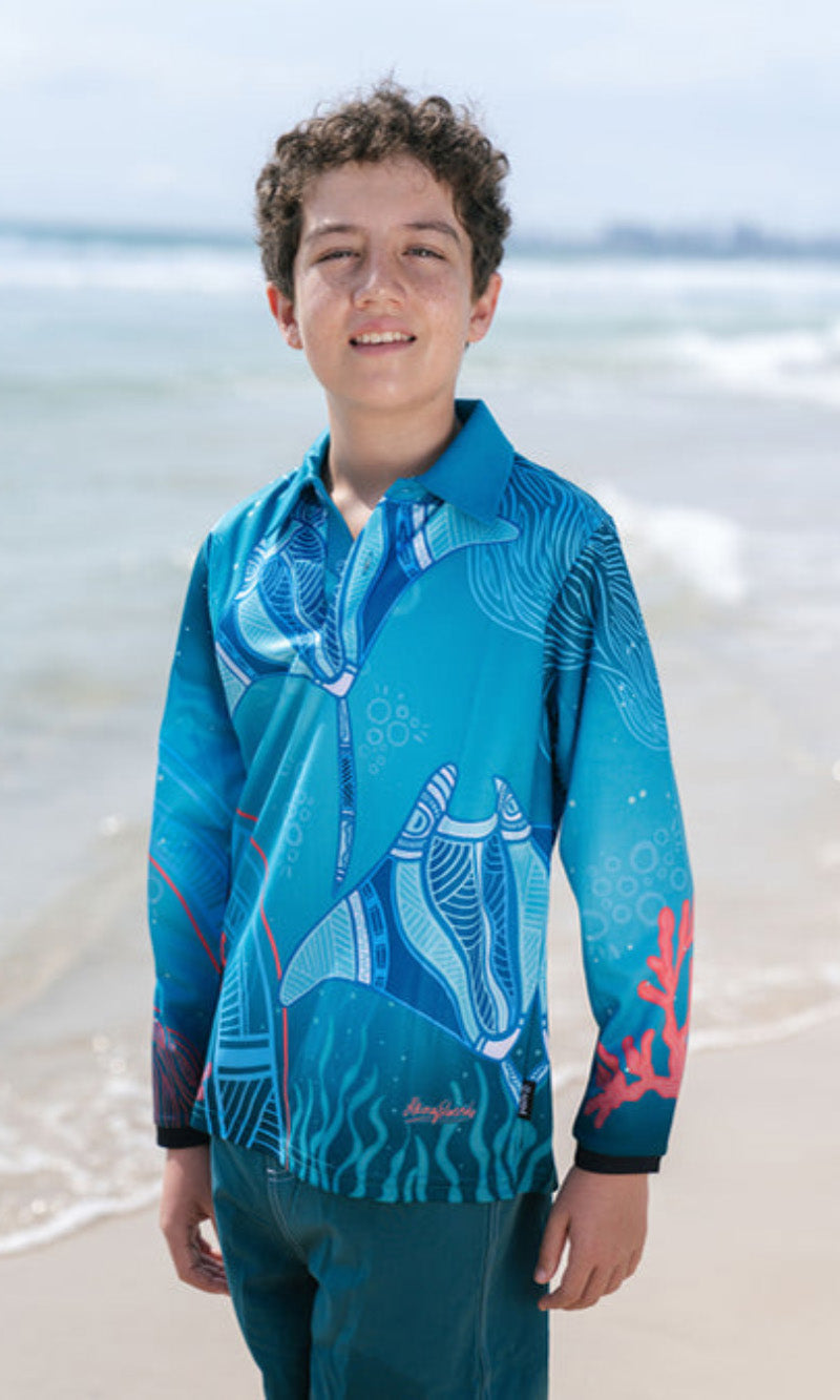 Aboriginal Art Kids Unisex Long Sleeve Meermay Stingray Journey