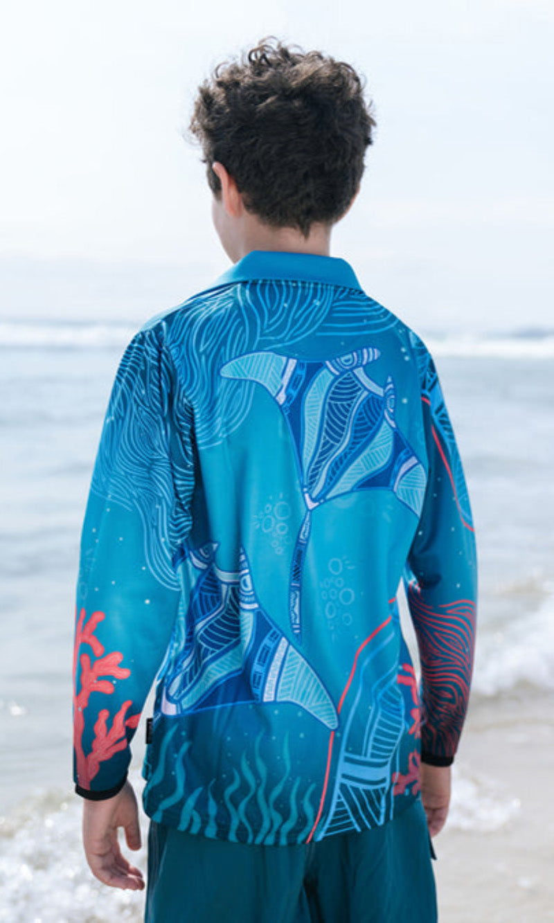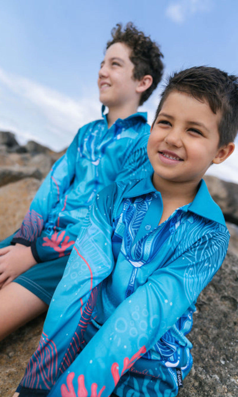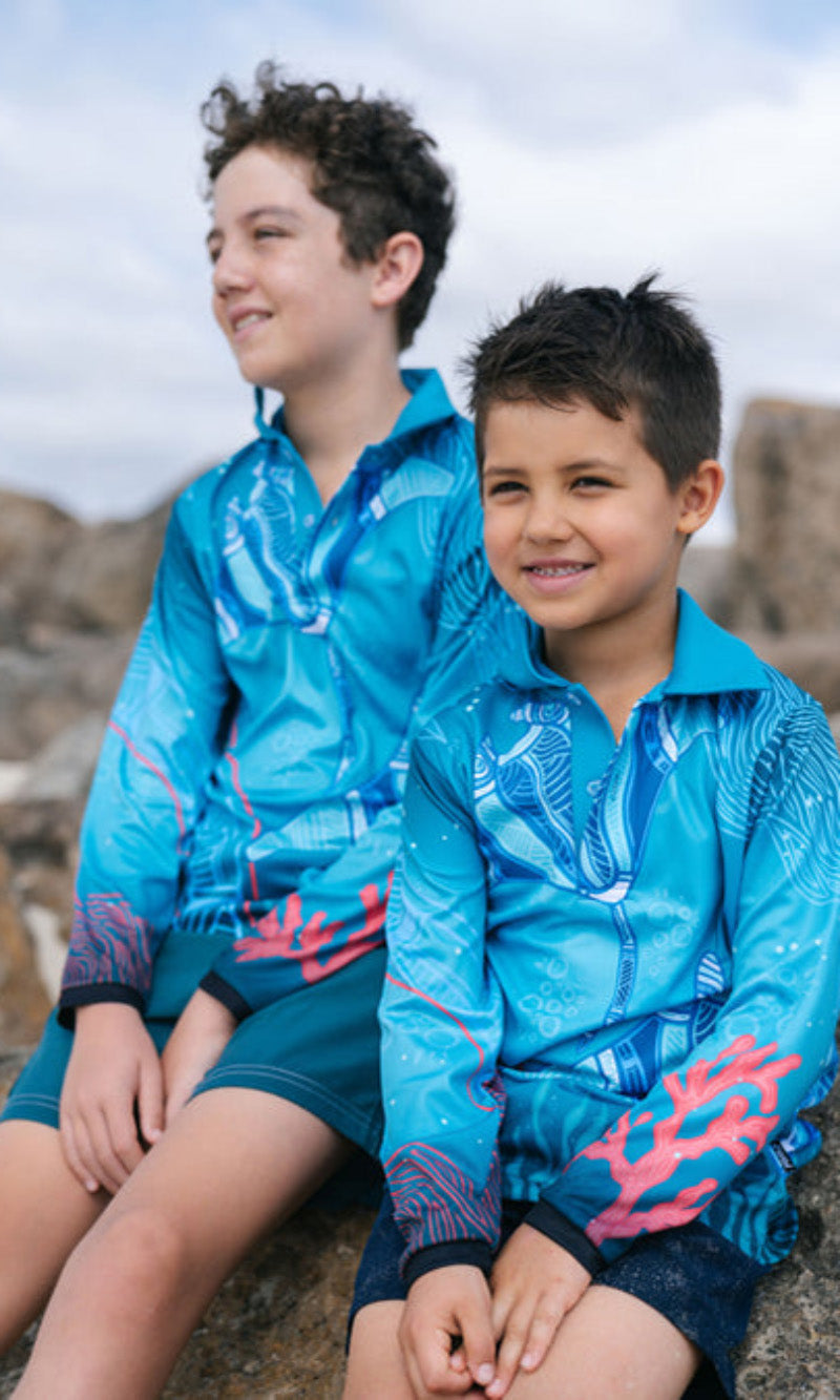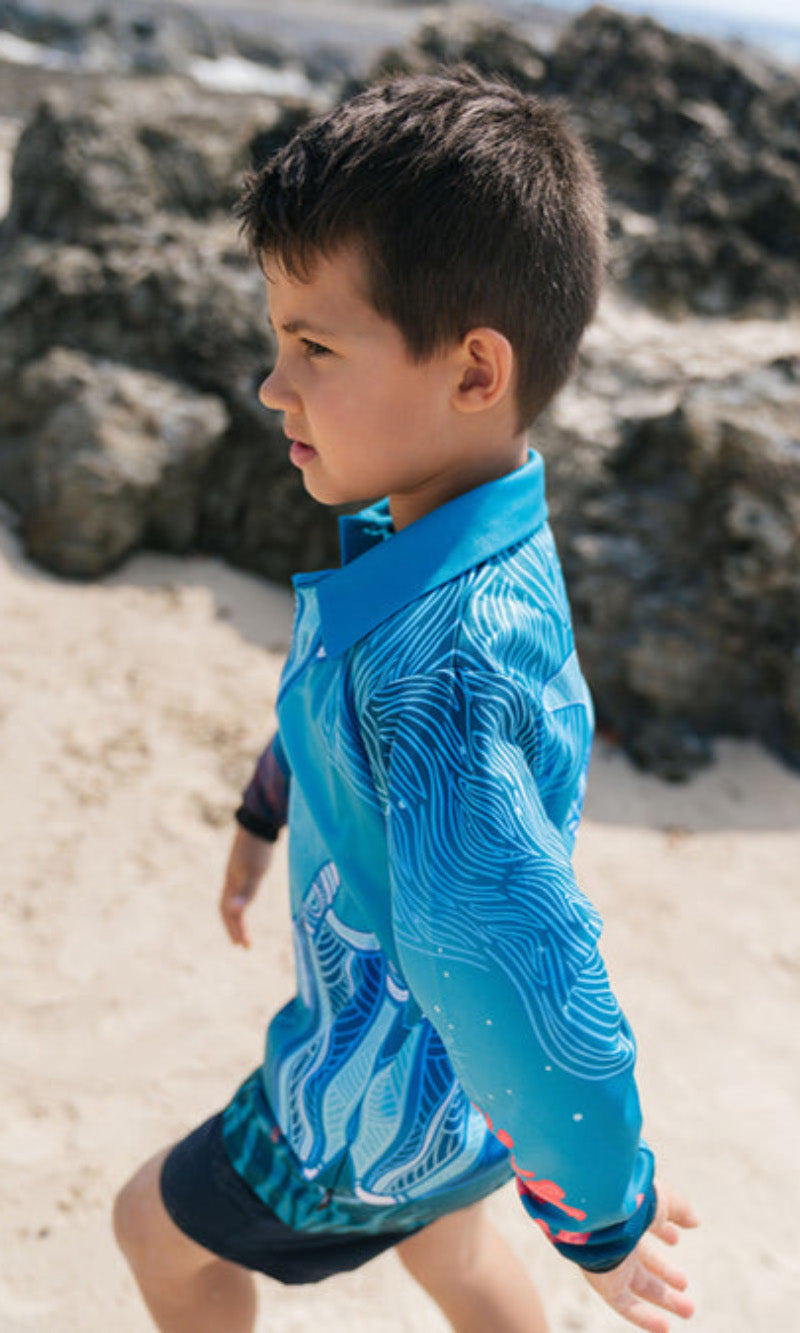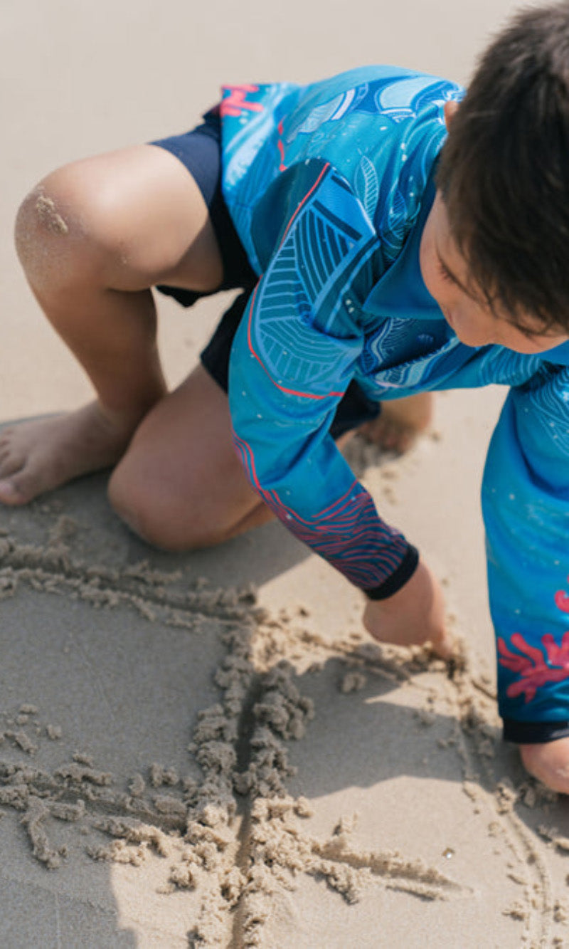 Aboriginal Art Kids Unisex Long Sleeve Meermay Stingray Journey