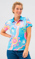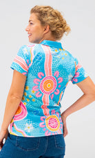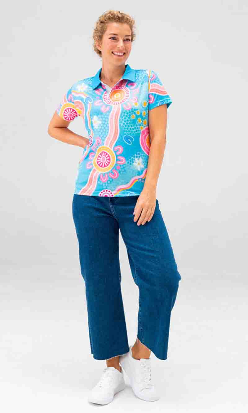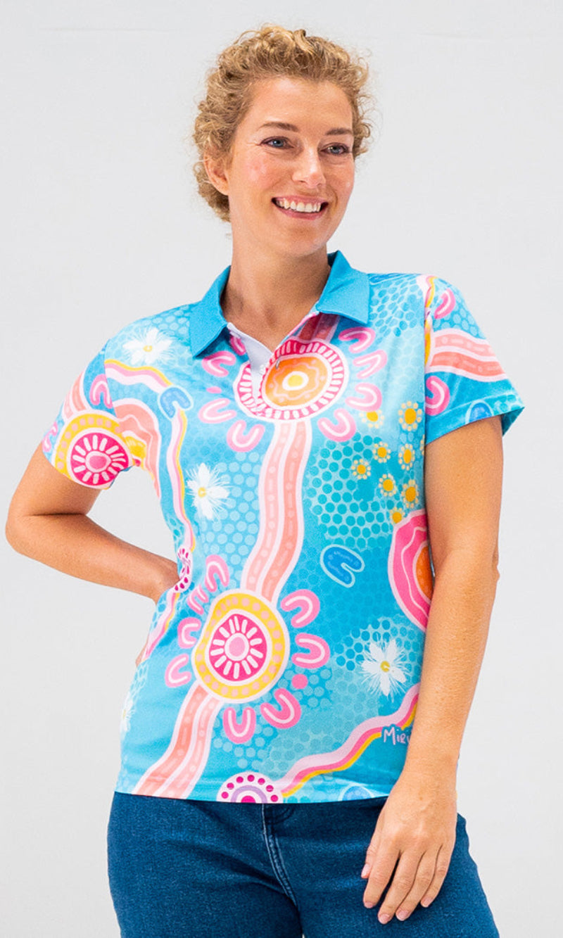 Aboriginal Art Ladies Fitted Polo Endless Summer