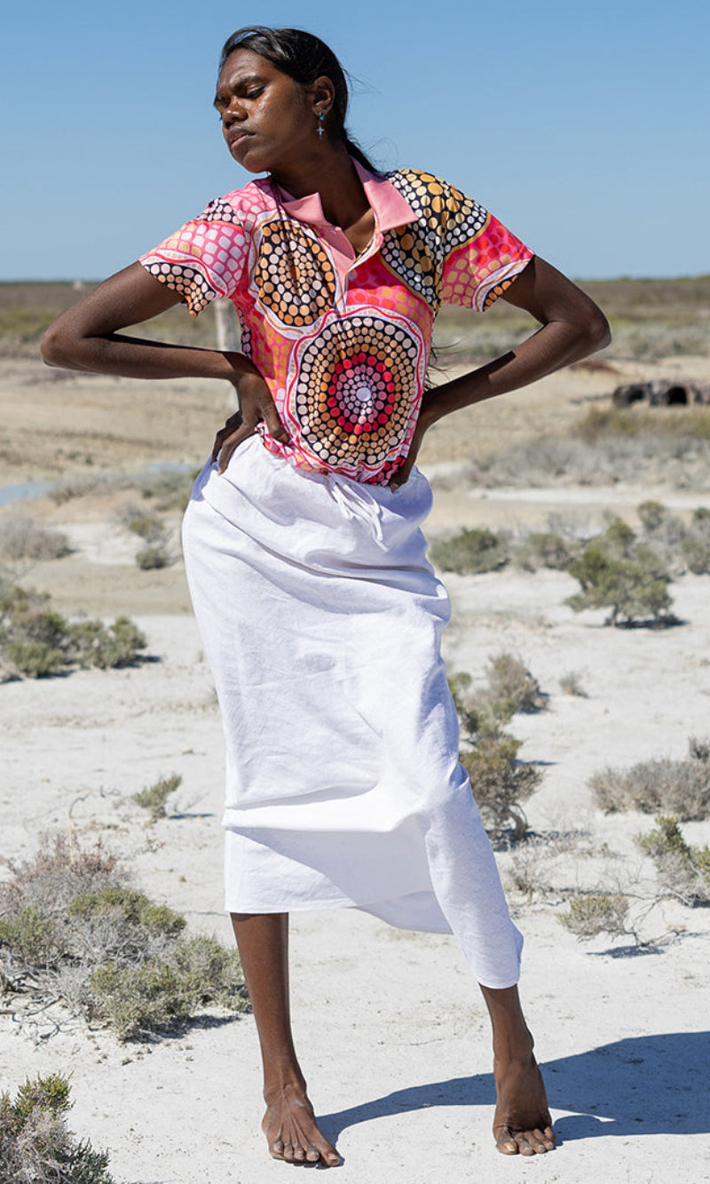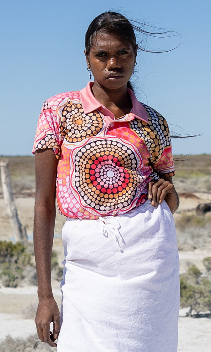 Our polos provide strong sun protection and a stylish and comfortable look that can be worn anywhere. A true wardrobe essential available in fitted, unisex and childrens styles and featuring vibrant First Nations artwork created especially for the 2024 theme.