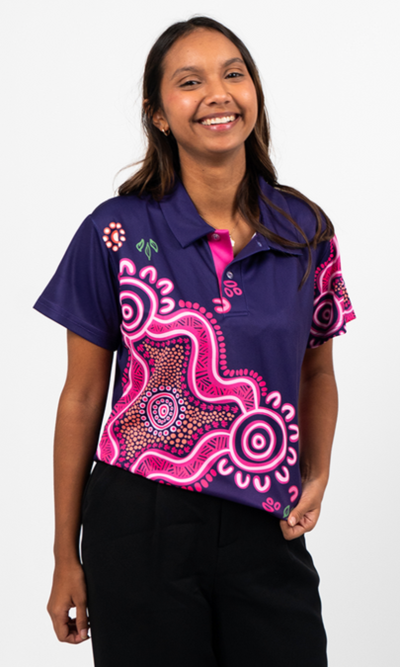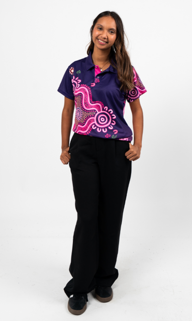 With built-in UPF50+ sun protection, you can enjoy the outdoors with confidence, knowing your skin is shielded from harsh UV rays. Available in unisex and fitted sizes, this polo is more than just everyday wear—it’s a vibrant celebration of First Nations culture, designed to be seen and appreciated wherever you go.