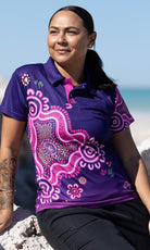Aboriginal Art Ladies Fitted Polo Forage Essence