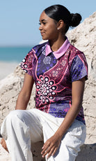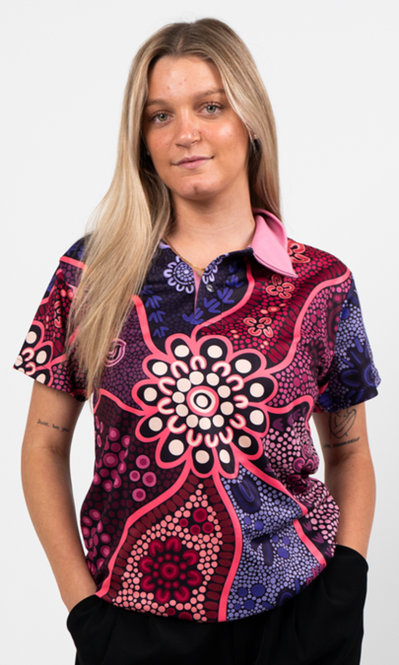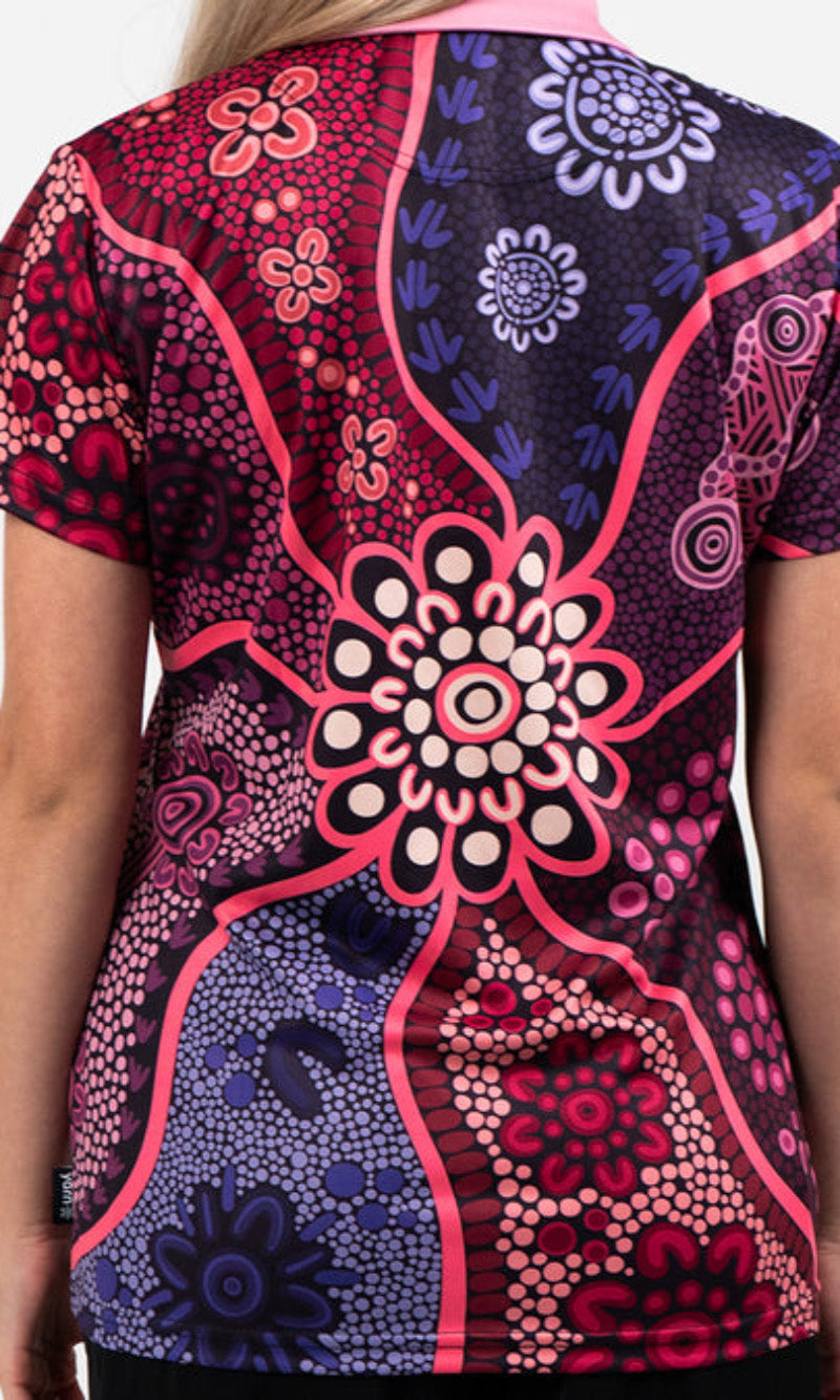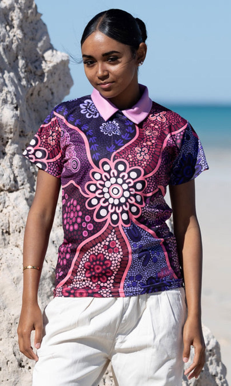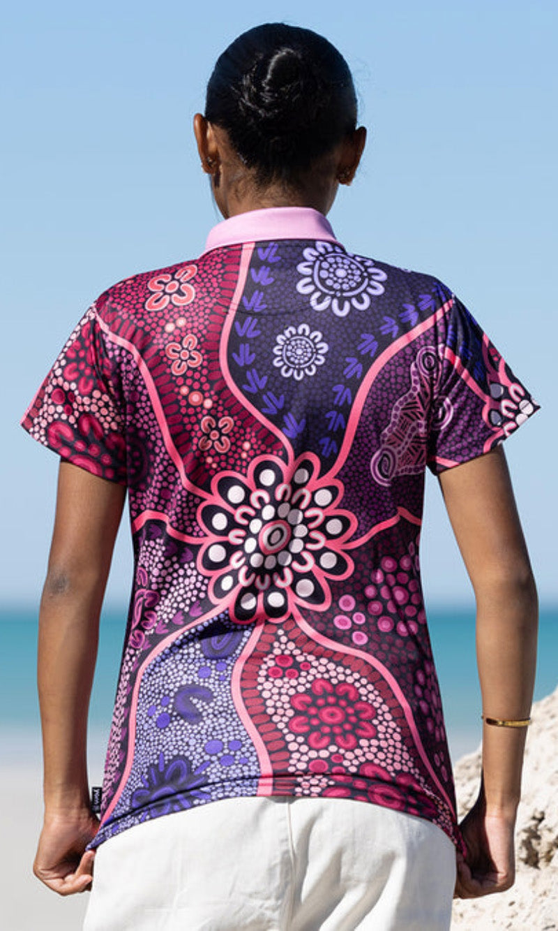 With built-in UPF50+ sun protection, you can enjoy the outdoors with confidence, knowing your skin is shielded from harsh UV rays. Available in unisex, fitted, and kids’ sizes, this polo is more than just everyday wear—it’s a vibrant celebration of First Nations culture, designed to be seen and appreciated wherever you go.