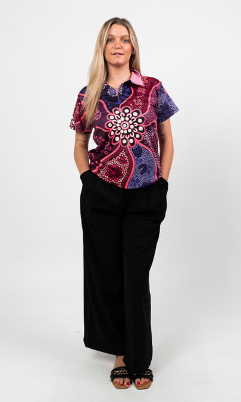 Wiradjuri artist Amy Kilby created these pieces as a heartfelt celebration of the strength, unity, and resilience of women within their communities. Available on essence and full pattern, feel the power and harmony with these stunning pieces.