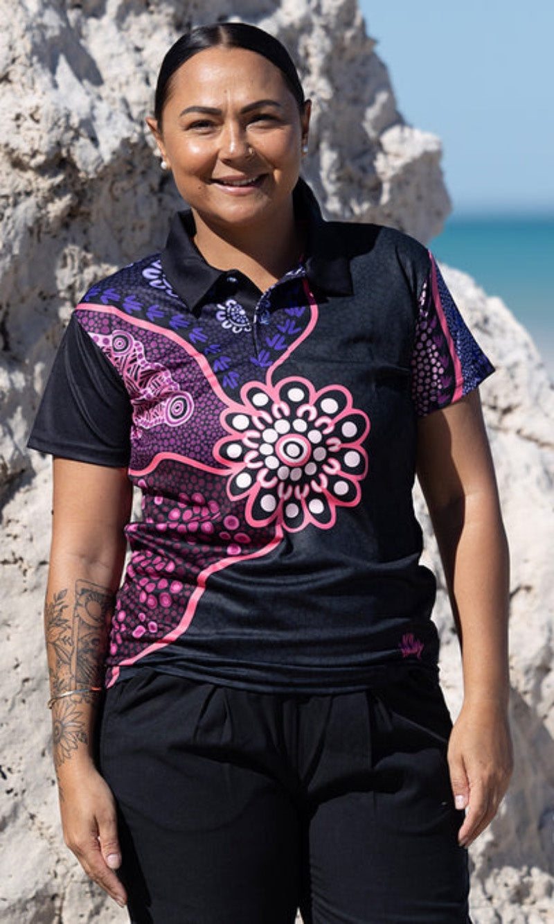 With built-in UPF50+ sun protection, you can enjoy the outdoors with confidence, knowing your skin is shielded from harsh UV rays. Available in unisex and fitted sizes, this polo is more than just everyday wear—it’s a vibrant celebration of First Nations culture, designed to be seen and appreciated wherever you go.