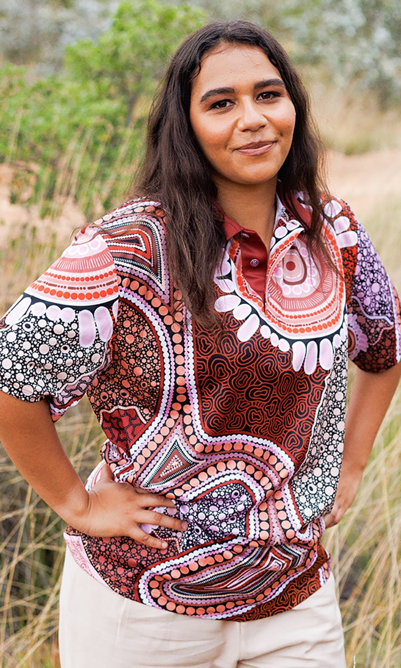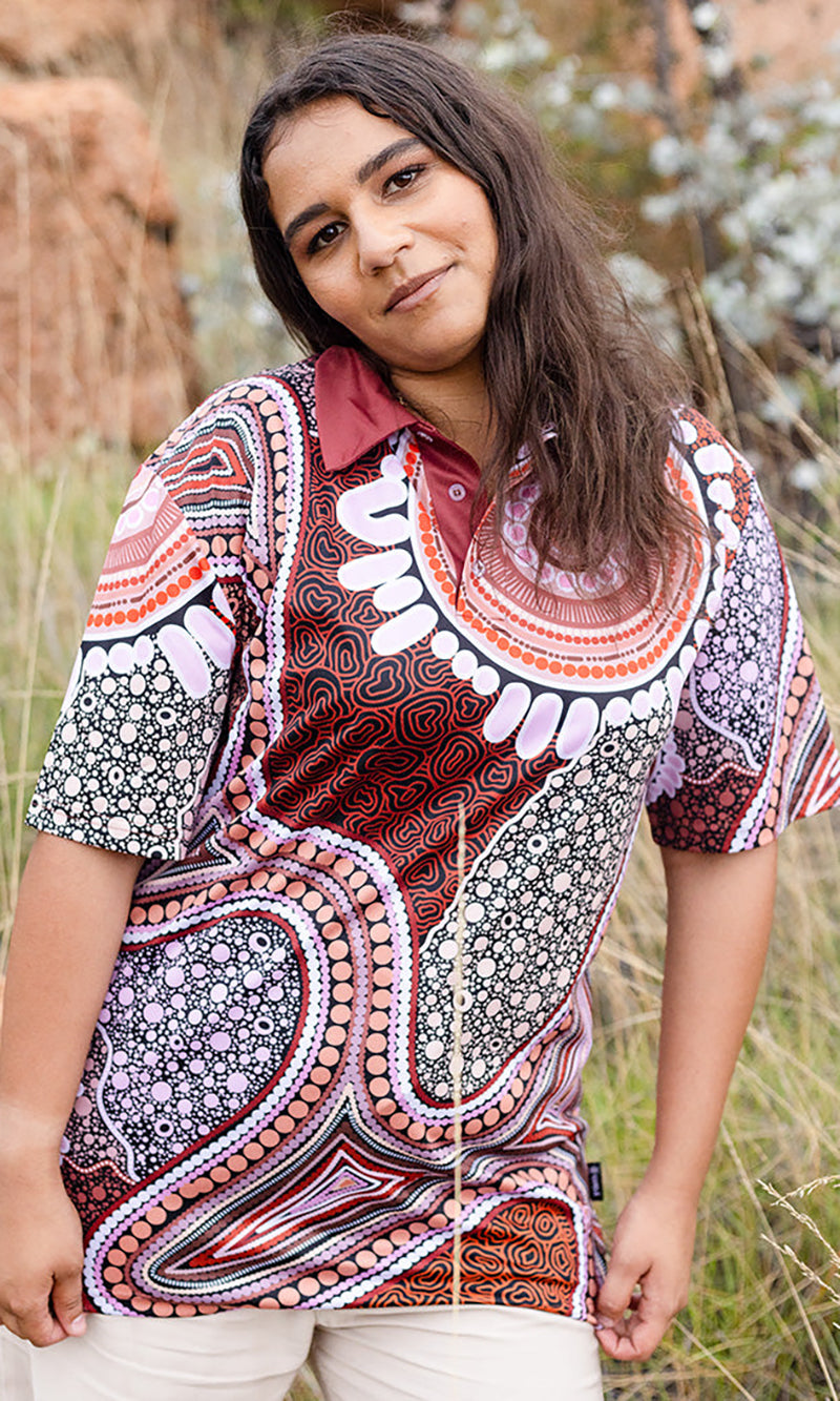 A true wardrobe essential available in fitted and unisex styles, our polos are a vibrant statement to start conversations and show your respect for First Nations cultures of Australia. Our polos provide strong sun protection and a stylish and comfortable look that can be worn anywhere - perfect from the office to the weekend!