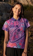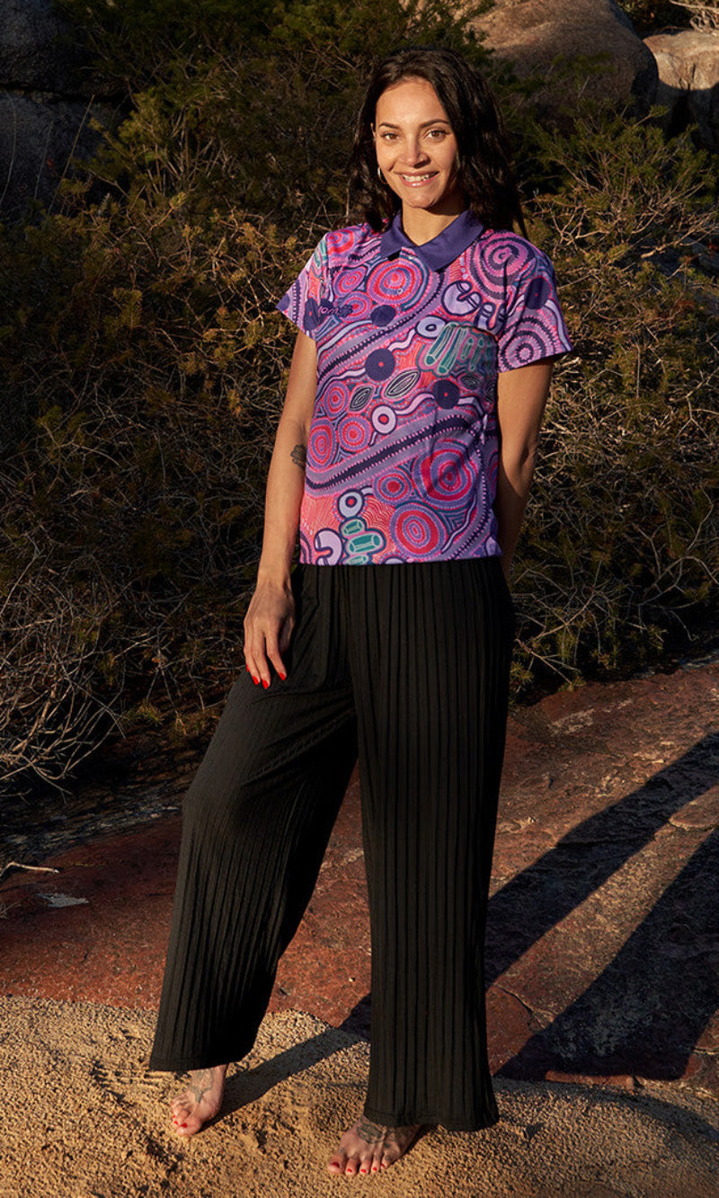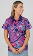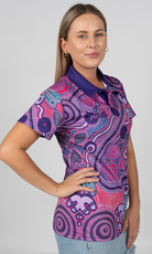 Aboriginal Art Ladies Fitted Polo Danjoo (Purple)