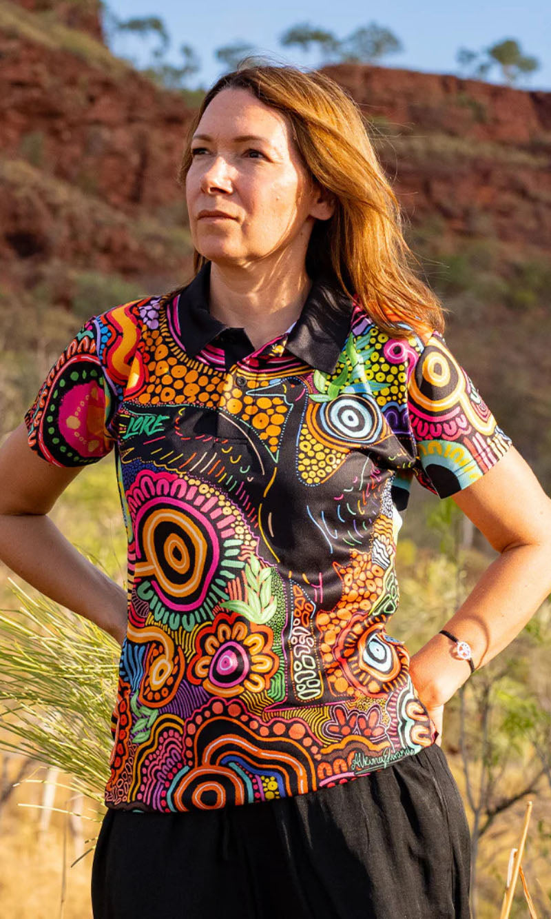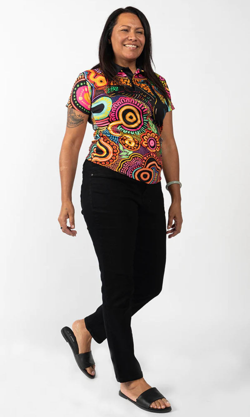 Aboriginal Art Ladies Fitted Polo Gunugudhula