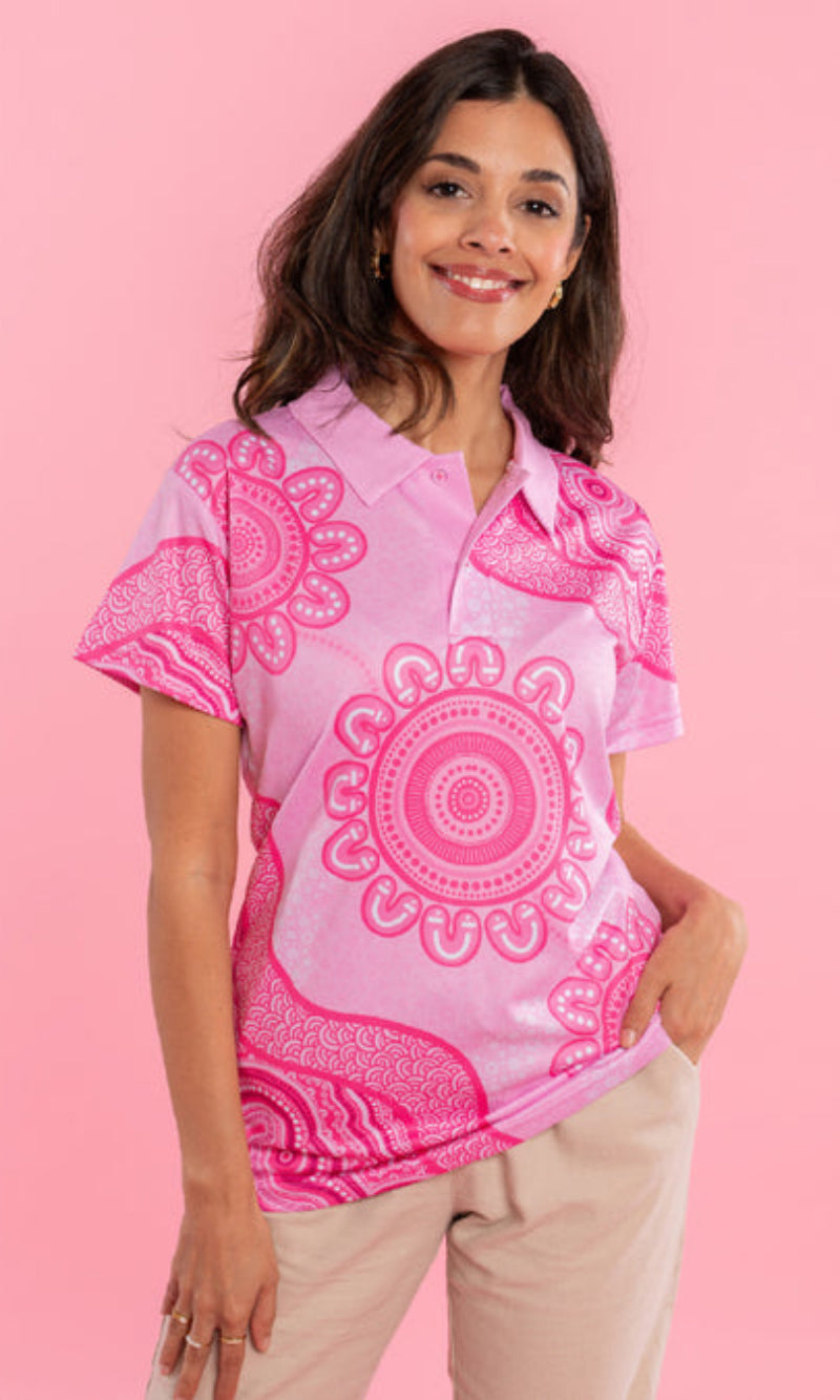 With built-in UPF50+ sun protection, you can enjoy the outdoors with confidence, knowing your skin is shielded from harsh UV rays. Available in unisex, fitted, and kids’ sizes, this polo is more than just everyday wear - it’s a vibrant celebration of First Nations culture, designed to be seen and appreciated wherever you go.