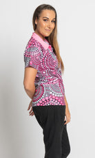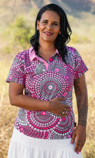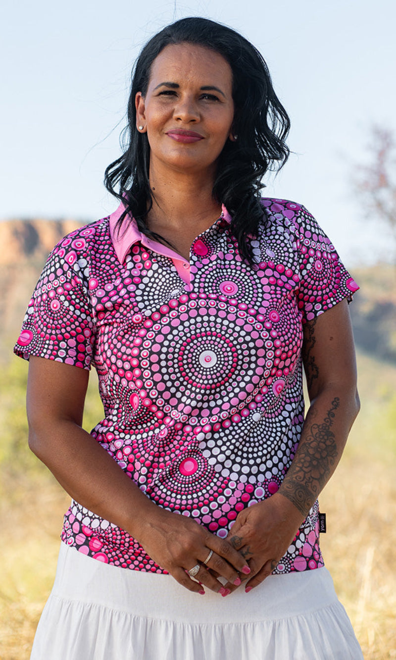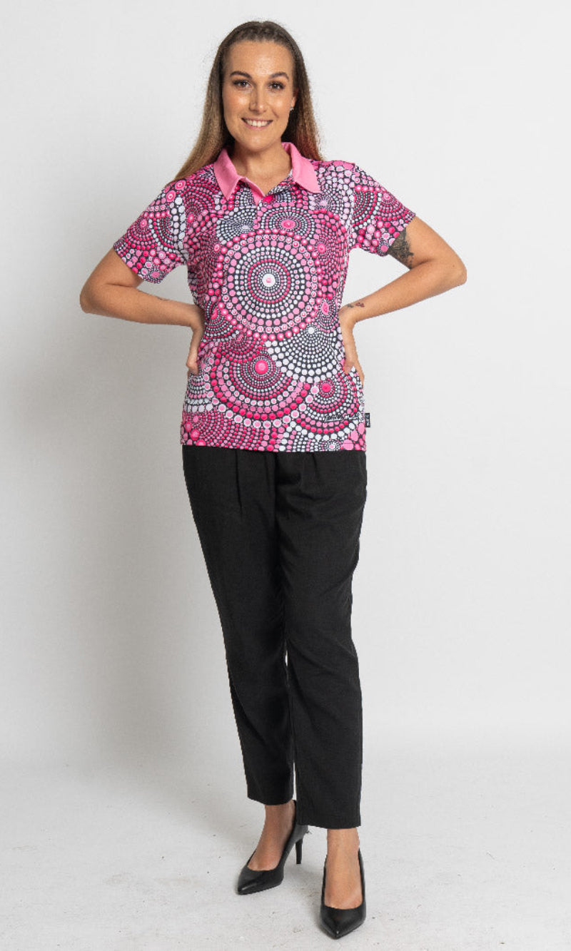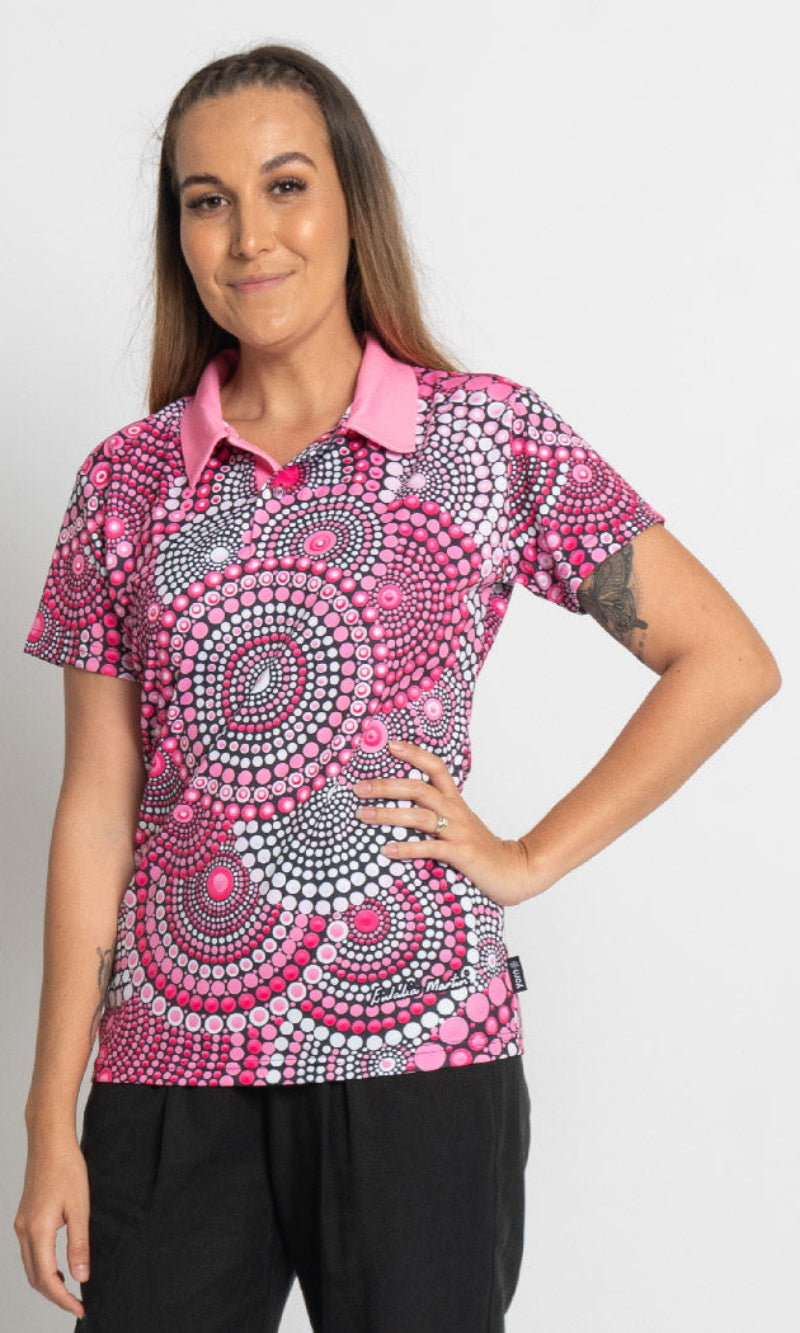 Aboriginal Art Ladies Fitted Polo Tribes of Women