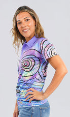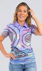 Aboriginal Art Ladies Fitted Polo Yura Buanganjin
