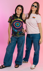 “This collection is a vibrant and unapologetic celebration of Pride - a time to honour the strength, visibility, and joy of being both Aboriginal and LGBTQIA+. It shines a light on the powerful intersection of culture, identity, and love, showcasing the beauty and resilience that exists within our communities. Pride is more than just a moment - it's a movement, a reflection of our history, our survival, and our right to take up space boldly and authentically. Through this collection, we hope people feel seen, celebrated, and empowered to embrace every part of who they are with pride and purpose.” - Bindi Bindi Art