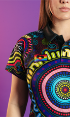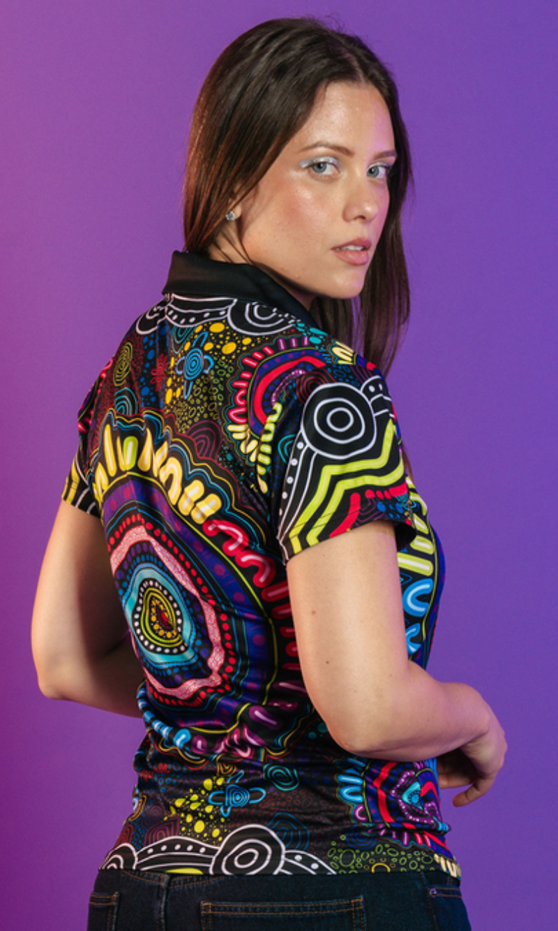With built-in UPF50+ sun protection, you can enjoy the outdoors with confidence, knowing your skin is shielded from harsh UV rays. Available in unisex, fitted, and kids’ sizes, this polo is more than just everyday wear—it’s a vibrant celebration of First Nations culture, designed to be seen and appreciated wherever you go.