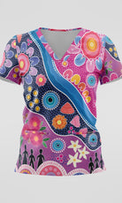 Aboriginal Art Ladies Three Pocket Scrub Thriving Together