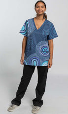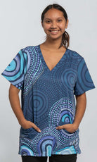 Aboriginal Art Ladies Three Pocket Scrub Top Our Future, Together