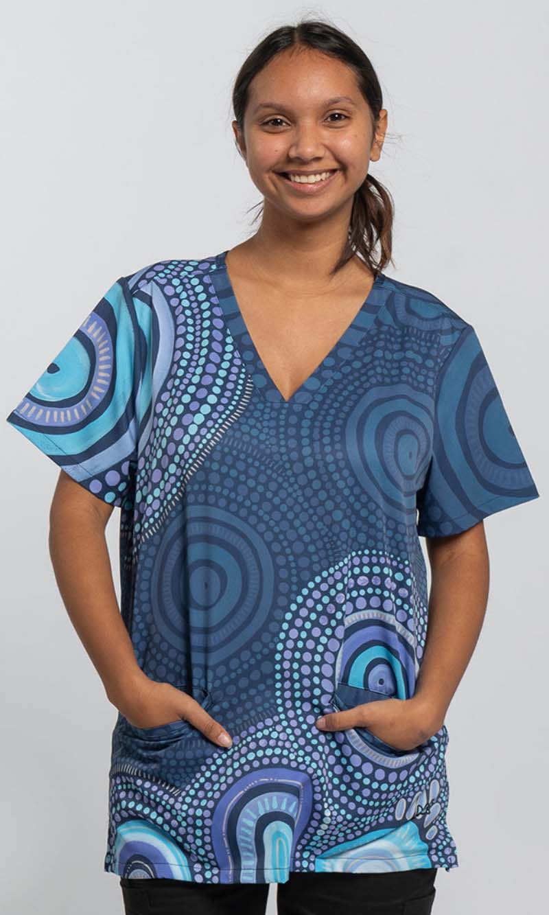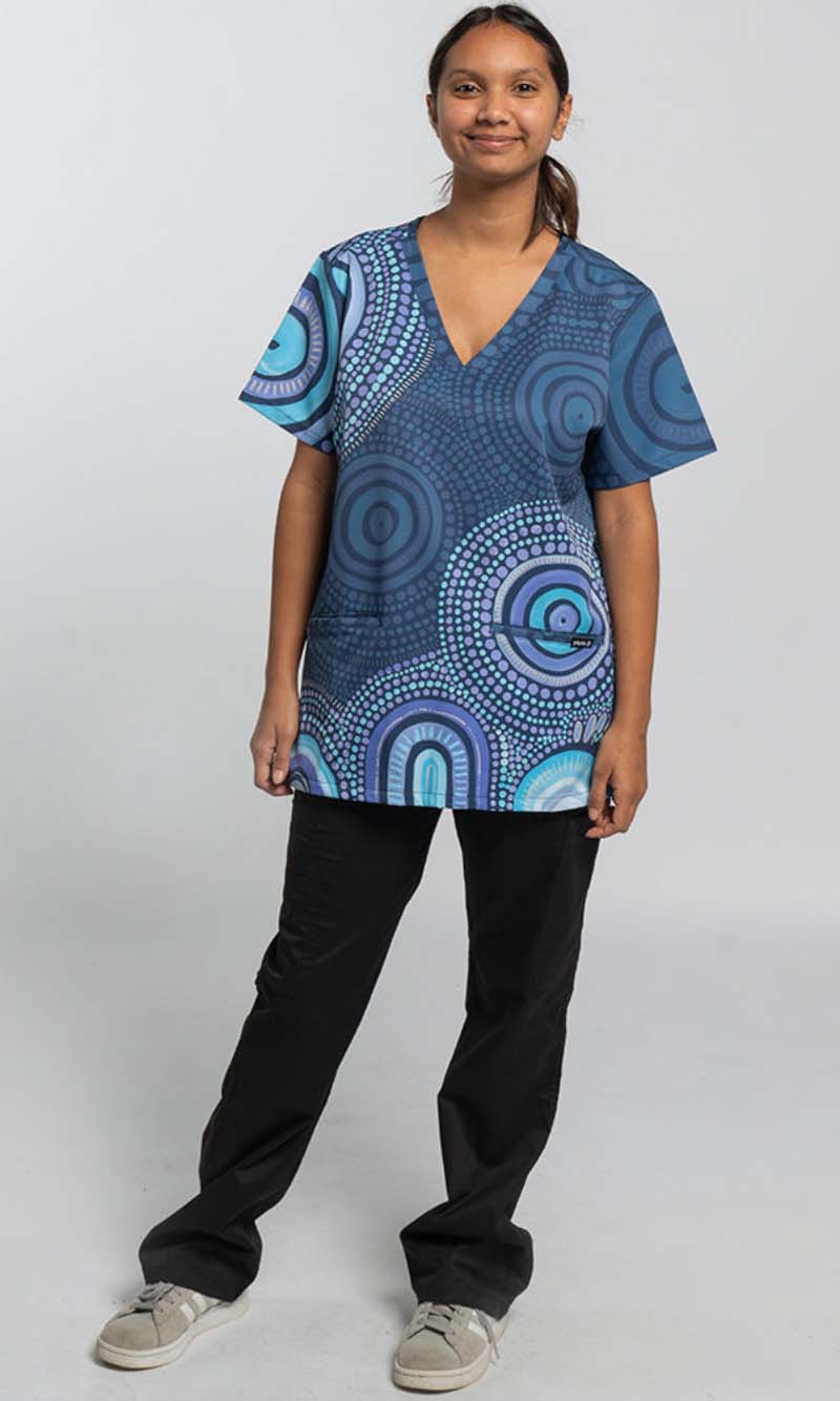 Brighten up long days on your feet caring for those who need it most! Our scrubs feature First Nations artwork printed onto high tech, high quality workwear that is both practical and beautiful.