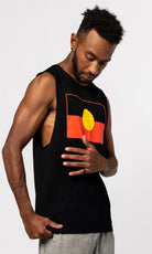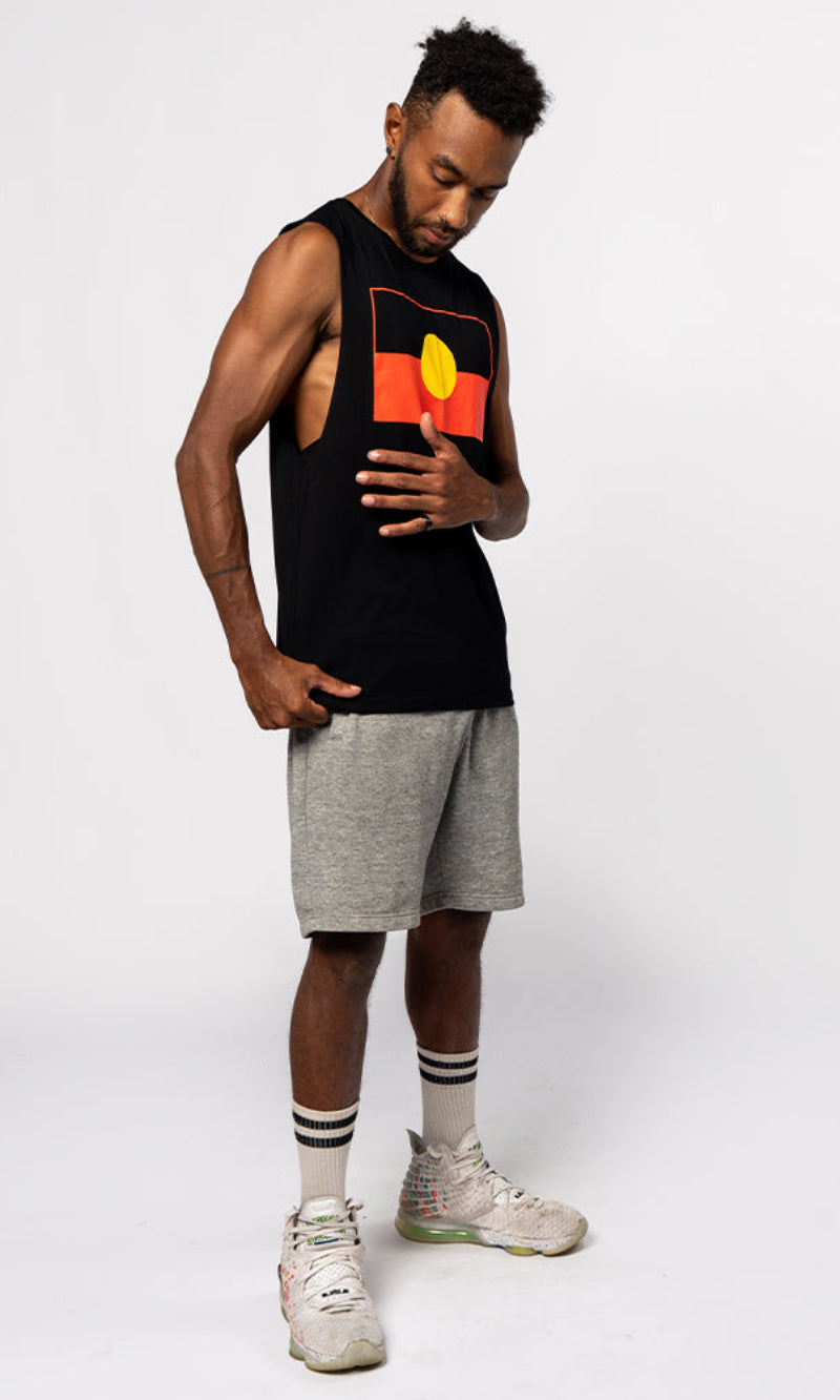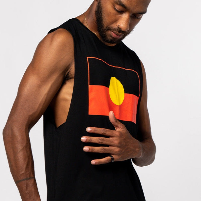 This men’s muscle top is a part of our ‘Raise the Flag’ collection, a range of products that celebrate the Aboriginal flag finally being freed and placed into public hands.