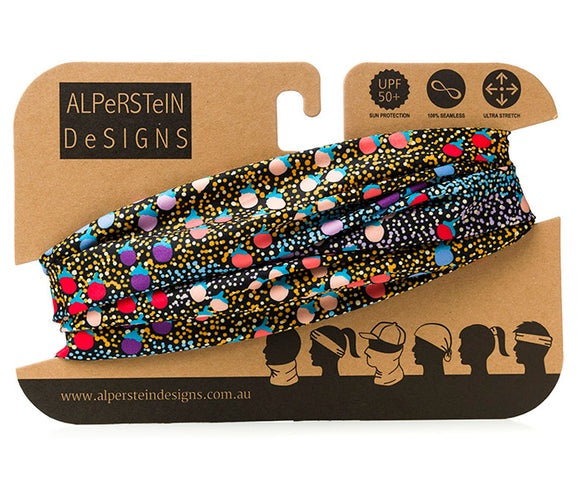 With so many ways to wear your neck gaiter and so many activities to wear them at, these neck gaiters are great for when you are out and about. Whether it's fishing or riding, skiing or running or just out for the day! Head out in style! Neck Gaiters are UPF 50+ for extra protection from the elements. Available in assorted designs, including featured artwork, reproduced under license by Murdie Nampijinpa Morris from Warlukurlangu Artists from the remote desert communities of Yuendumu and Nyirripi in Central Australia.