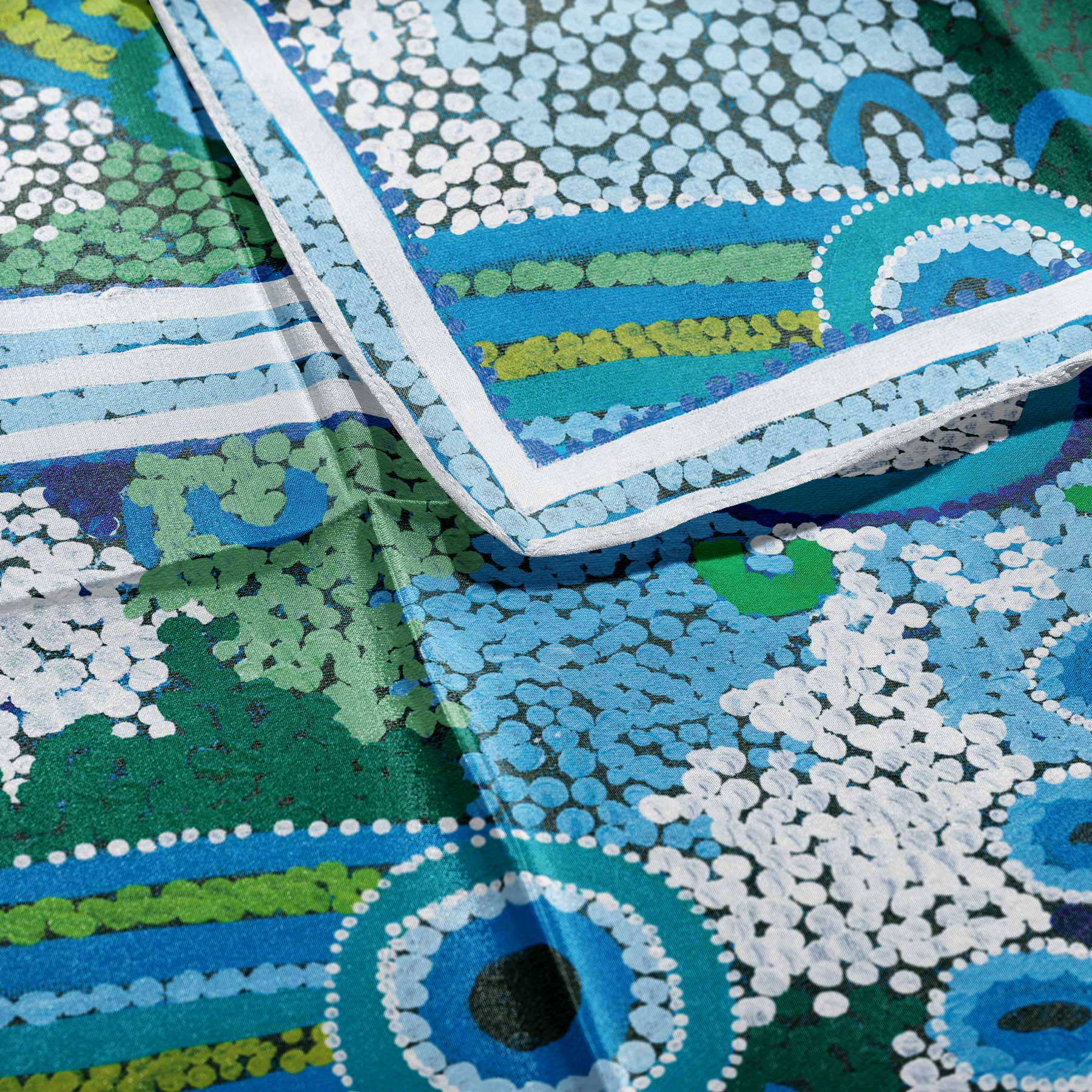 Features hand-rolled edges and a printed design on lightweight vegan silk microfibre material.