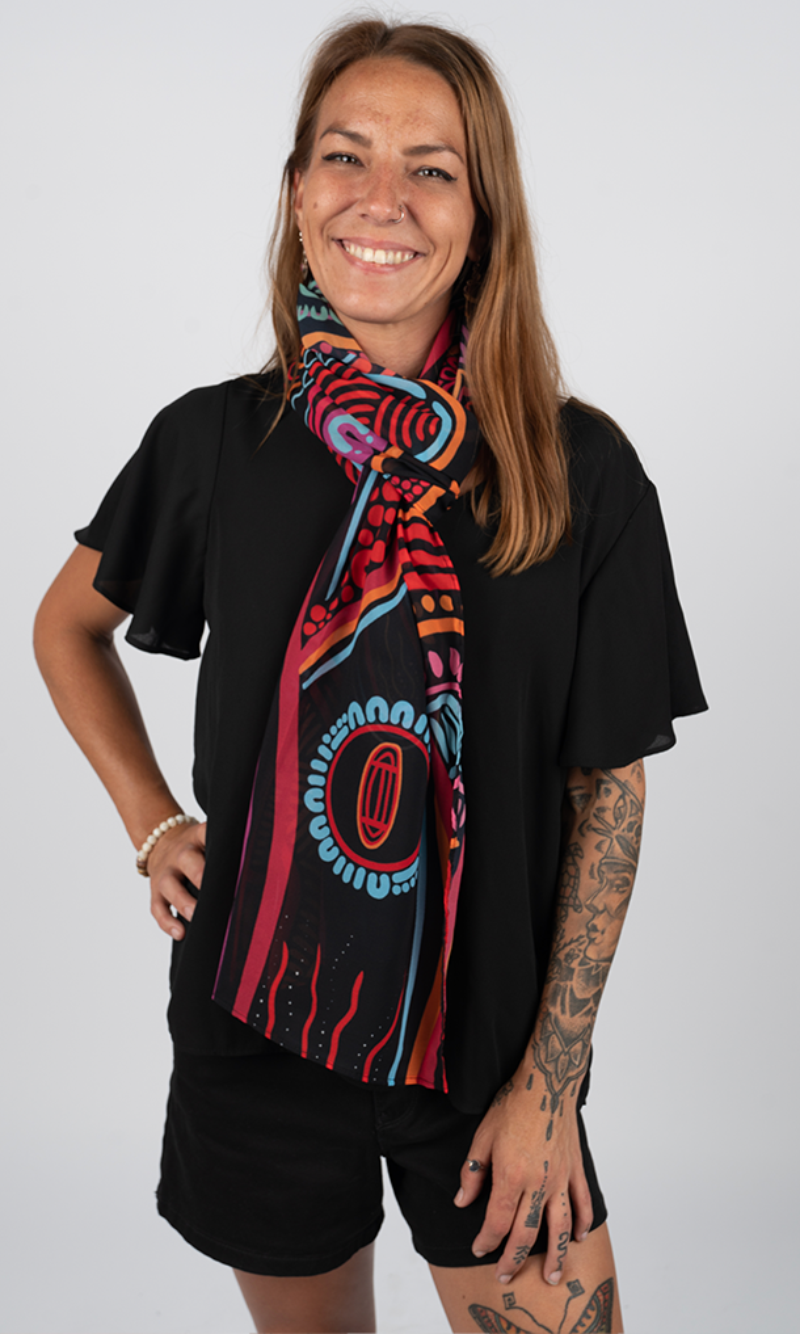 Featuring artwork that reflects on 'For Our Elders', our lightweight scarves add a splash of colour that can be worn in any season.