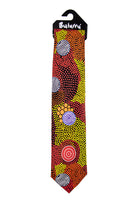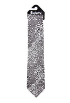 Introducing our exclusive line of silk ties featuring authentic aboriginal designs. Each tie is made with the highest quality silk and crafted with attention to detail, making them the perfect accessory for any formal occasion. But what sets these ties apart is that they give back to the community that inspired them. A portion of the proceeds from each sale goes directly to the aboriginal artists, who are credited and compensated for their work. By purchasing one of these ties, you not only look stylish, but you also support the preservation and celebration of indigenous culture.