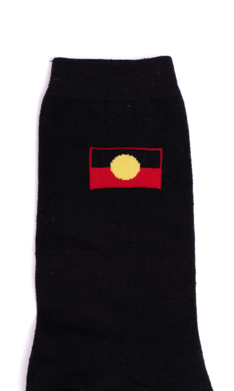 These socks are part of our ‘Raise the Flag’ collection, a range of products that celebrate the Aboriginal flag finally being freed and placed into public hands.