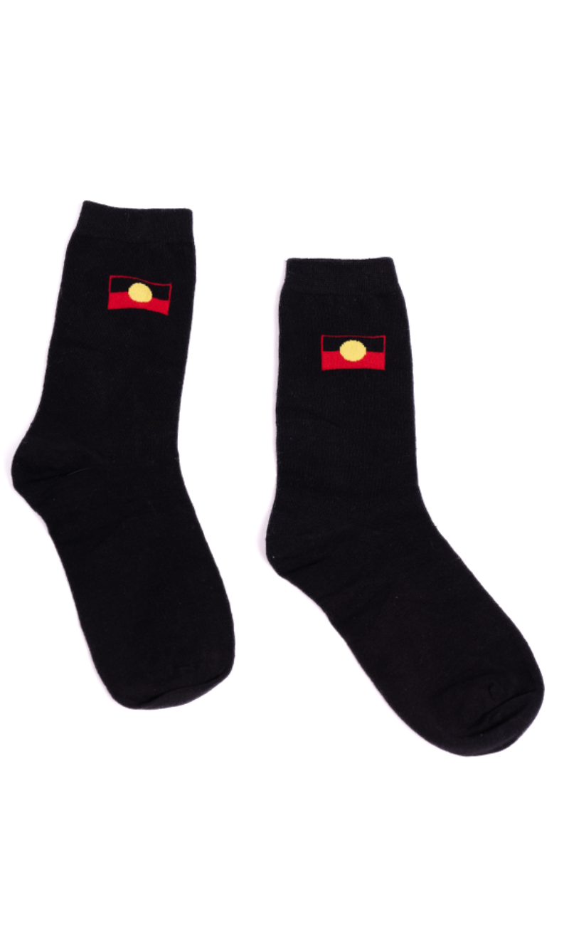 These socks are part of our ‘Raise the Flag’ collection, a range of products that celebrate the Aboriginal flag finally being freed and placed into public hands.