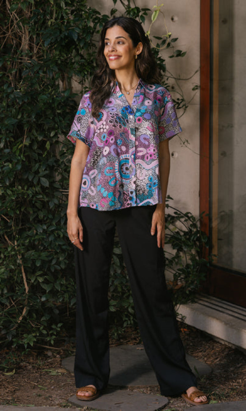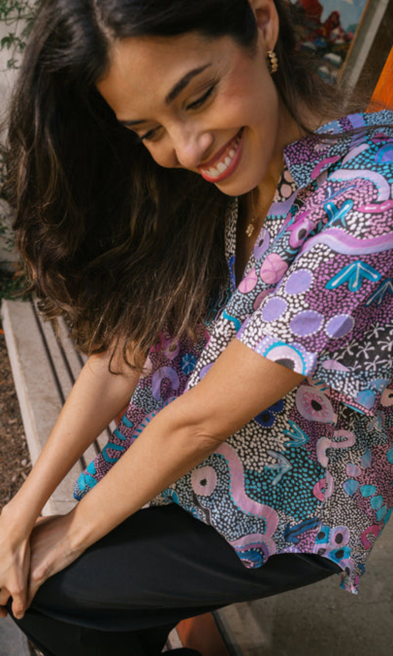 Each shirt features First Nations artwork from collaborating artists across Australia, printed with care to capture rich design details. Every purchase directly supports artists through royalties, transforming your wardrobe into meaningful style.