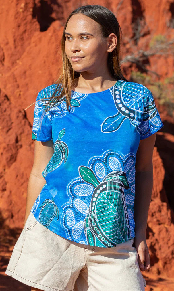Aboriginal Art Fashion Top Ocean Turtle